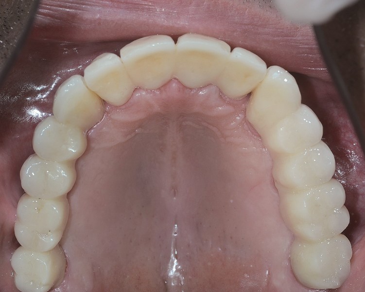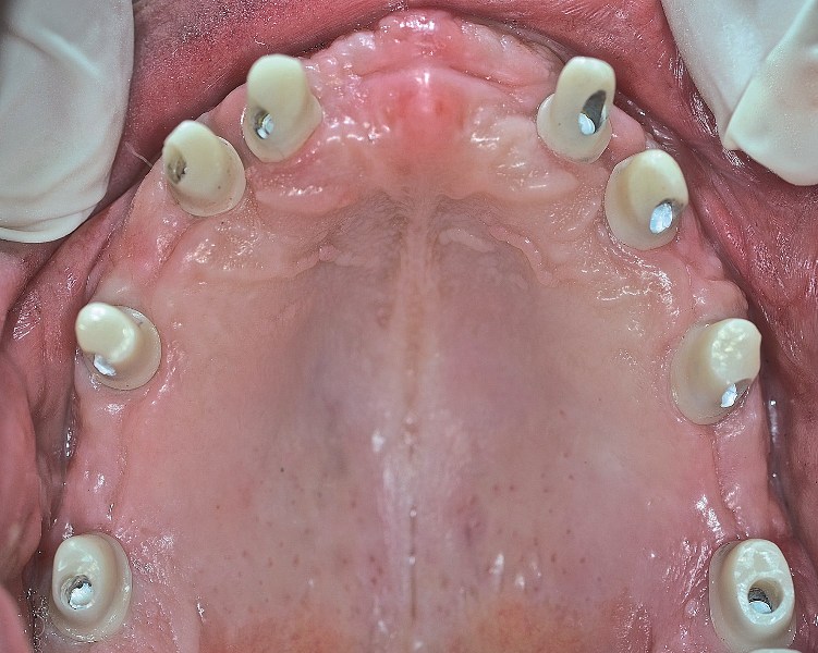 W mojej opinii, w naprawdę wyjątkowych przypadkach można umocować 12 zębów na stałe na 4 implantach. Warunki muszą być jednak bardzo sprzyjające. Aby wszczepić wystarczająco długie i szerokie implanty do utrzymania 12 zębów, kość musi być obfita. Bardziej realistyczną liczbą jest 5 do 8 implantów. Wówczas nie są one przeciążone, a siły zgryzu rozkładają się prawidłowo. Ostateczna ilość implantów przy pełnej rekonstrukcji to decyzja bardzo indywidualna i złożona. Składają się na nią  takie czynniki, jak jakość i ilość kości, tonacja mięśni twarzy, rozmiar szczęki i żuchwy pacjenta.