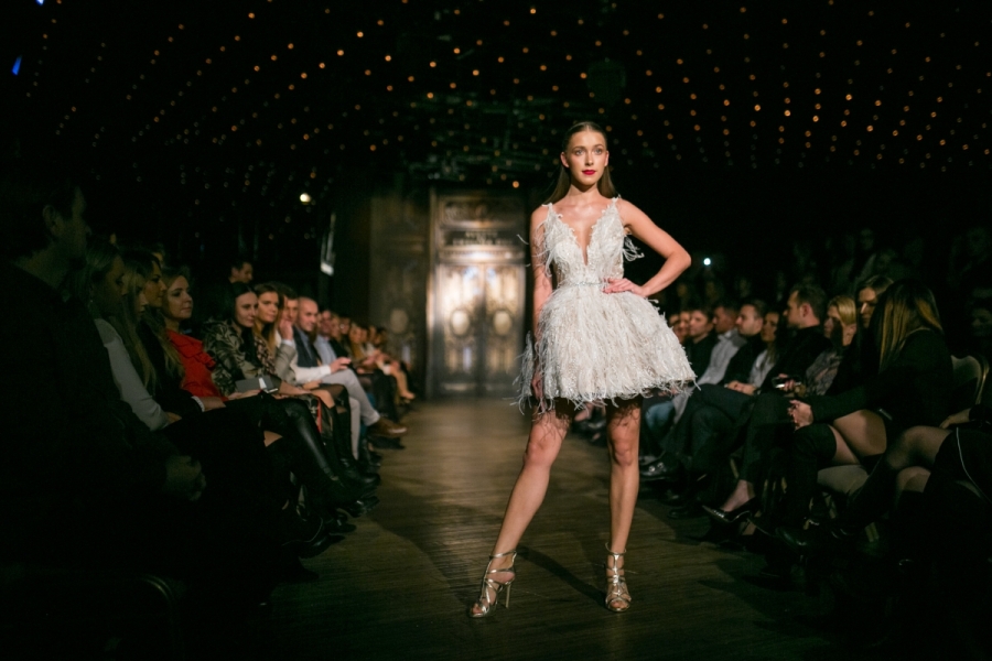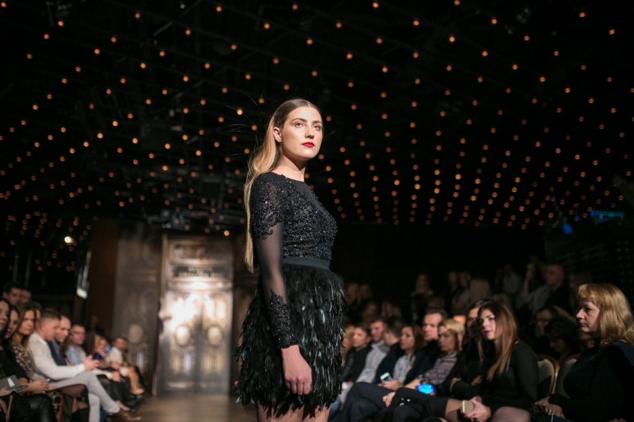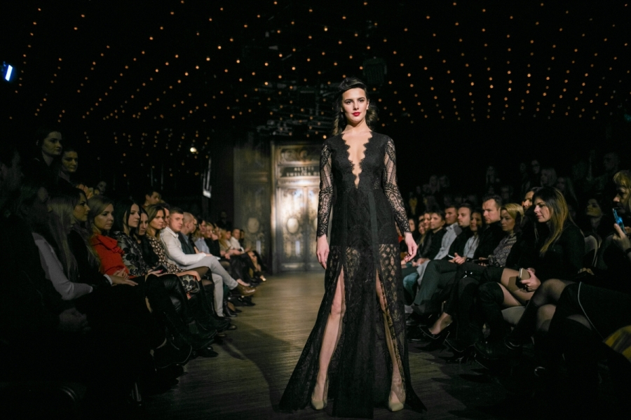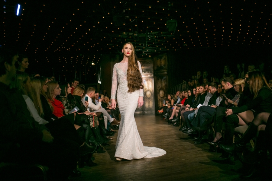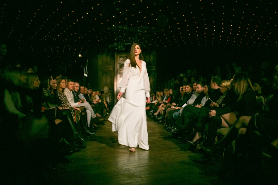 Show rozpoczęła prezentacja sukien ślubnych, w których przeważały lekkie pióra, oryginalne błyszczące koronki oraz kamienie Swarovskiego nadające stylizacjom pięknego blasku. Nie zabrakło też wytwornych kreacji wieczorowych o niebanalnym wykończeniu z haftowanych koronek, zdobionych cekinami i koralikami. Wszystkie stylizacje utrzymane były w kolorystyce klasycznej czerni, bieli oraz złota.