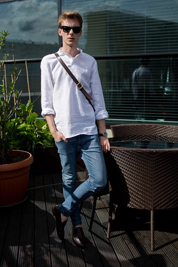 Jakie zatem kolory preferuje młody projektant? Biel. Koszule szyje tylko białe. Klienci nie dostaną ich w żadnym innym kolorze. To kolor czystości. Wyjątek? Tylko dla klientów indywidualnych, którzy są w stanie uargumentować swoje wizje.