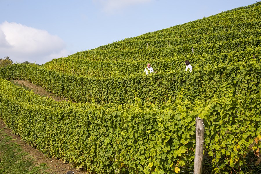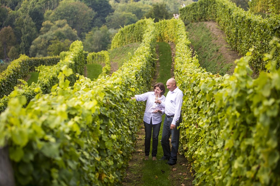 Ciekawość gości jest tym większa, że wystarczy kilka chwil spędzonych w winnicy, by zauważyć, że na pozór takie samo wino różni się w sposób niebywały. W zależności od odmiany niby te same czerwone, albo białe kiście smakują diametralnie różnie. Inaczej Siegerrebe, Solaris, inaczej Muskaris, z których robi się wina białe. Podobnie jest z Rondem, Regentem i Cabernet Dorsa, odmianami, z których powstaje wino czerwone.