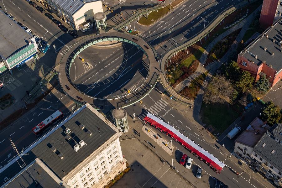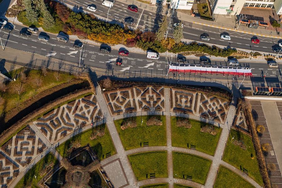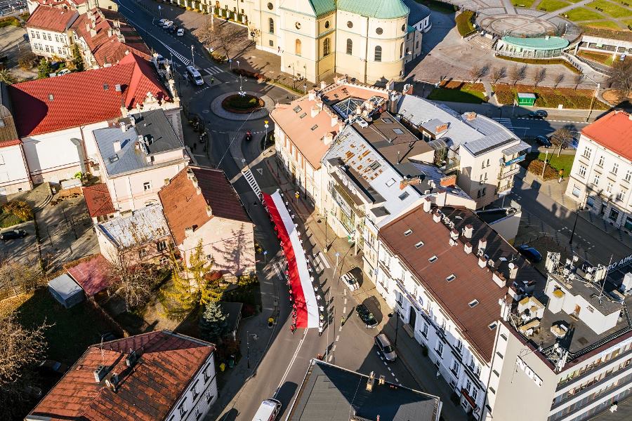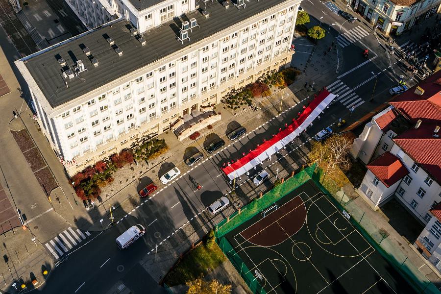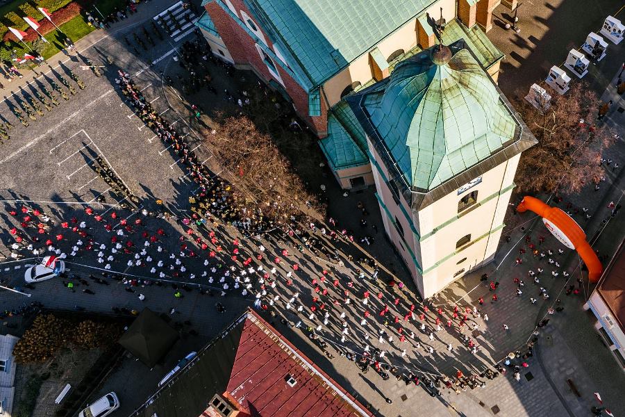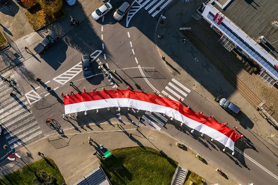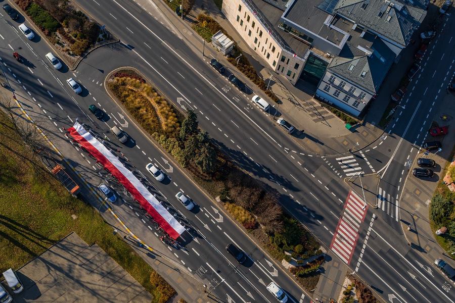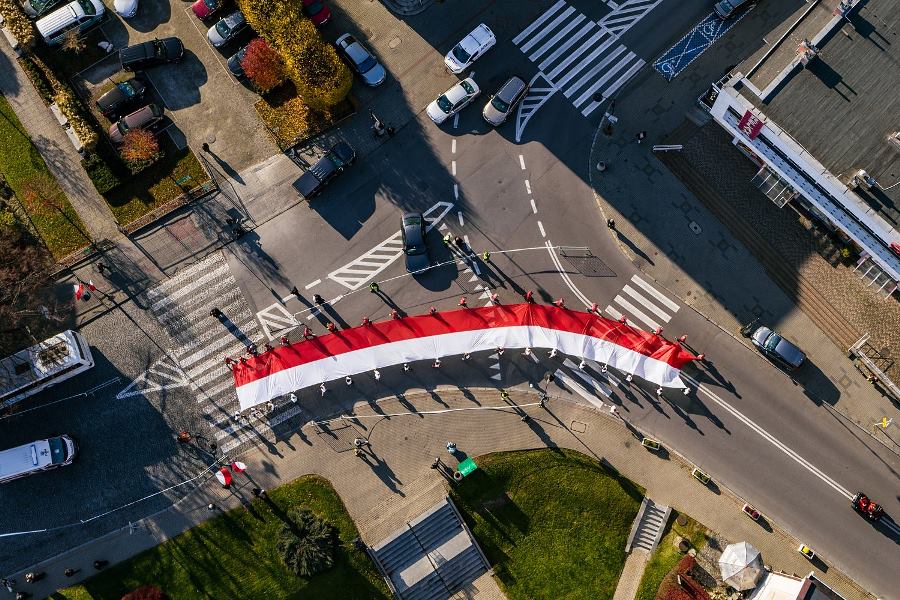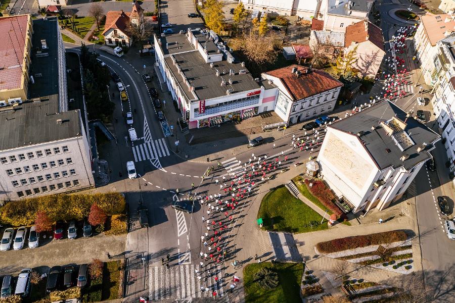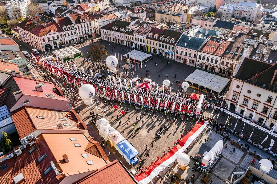 Wszyscy zawodnicy ubrani w białe lub czerwone koszulki stworzyli „żywą flagę”, a 35 osób na końcu stawki pobiegło z ogromną flagę Polski, którą nieśli przez całą trasę.