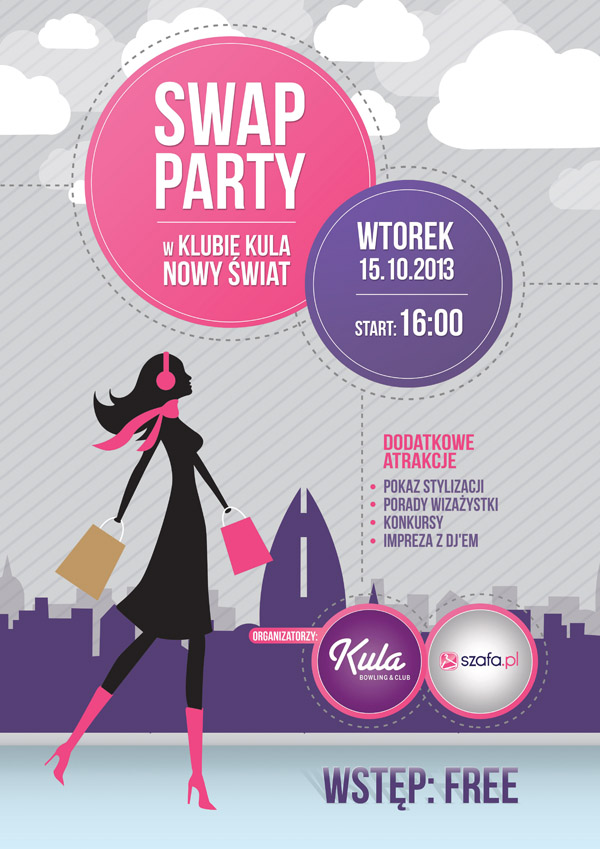 SWAP jest, po pierwsze, bezgotówkową (zazwyczaj) wymianą ubrań, po drugie szybkim i bardzo prostym sposobem na przewietrzenie szafy. Ale najważniejsze, że jest to ekologiczne, bo nie wyrzucamy rzeczy do kosza, oraz ekonomiczne, bo oddając swoje ubrania, buty itd., dostajemy inne. Dlatego właśnie imprezy połączone z zamianą „niepotrzebnych” są coraz bardziej popularne. W najbliższym czasie w Rzeszowie odbędą się dwa takie spotkania, organizowane przez portal Szafa.pl, który powstał w Rzeszowie, a dziś ma tysiące użytkowniczek w całym kraju. We wtorek, 15 października, o godz. 16.00 w Klubie Kula w Galerii Nowy Świat odbędzie się SWAP Party. W trakcie którego  ubrania, buty, torebki, biżuteria, dodatki, a nawet książki zalegające w szafach, szufladach, na półkach mogą zyskać nowe właścicielki. Wymiana ubrań będzie połączona z zabawą, prezentacją stylizacji i pokazami stylistów.