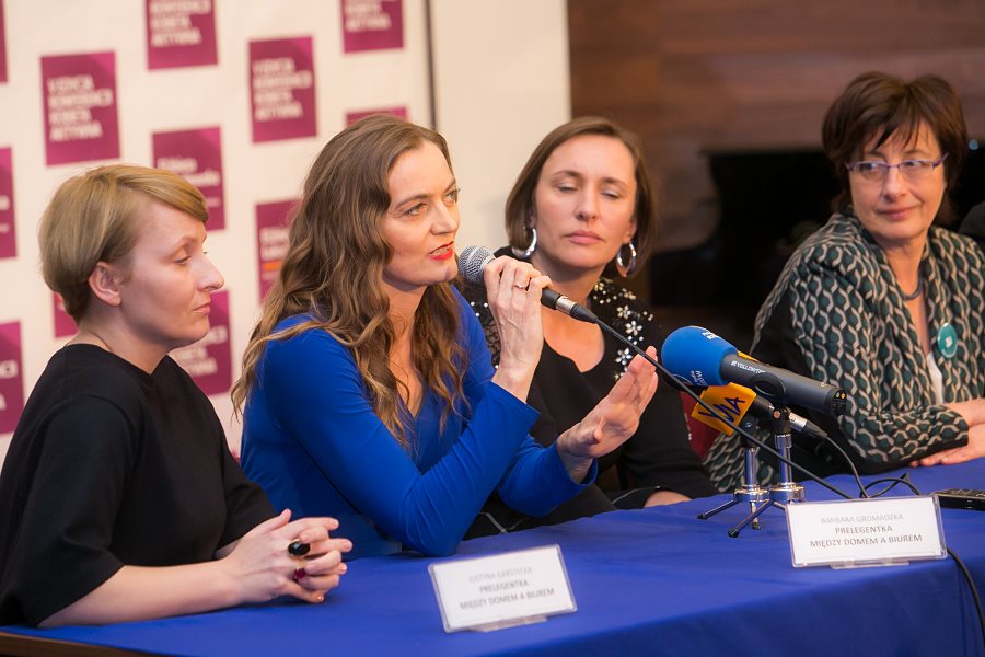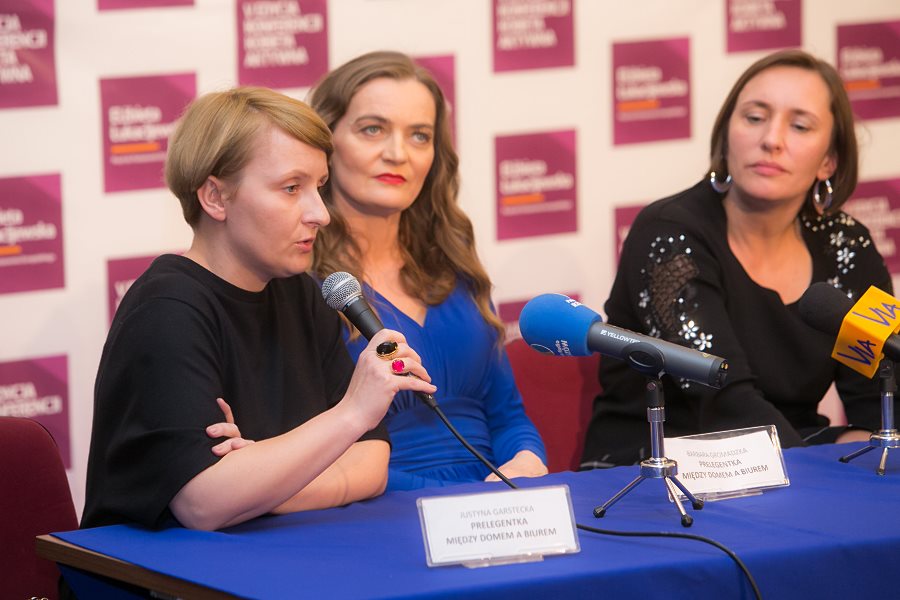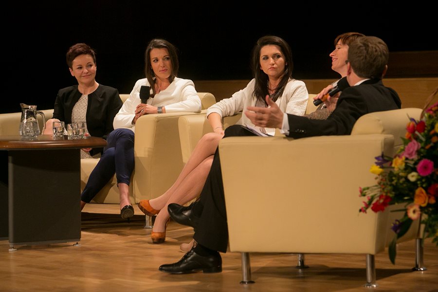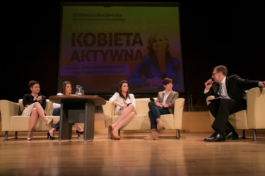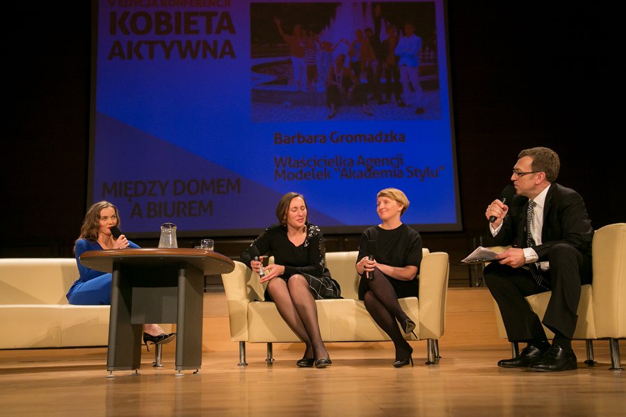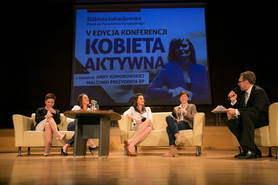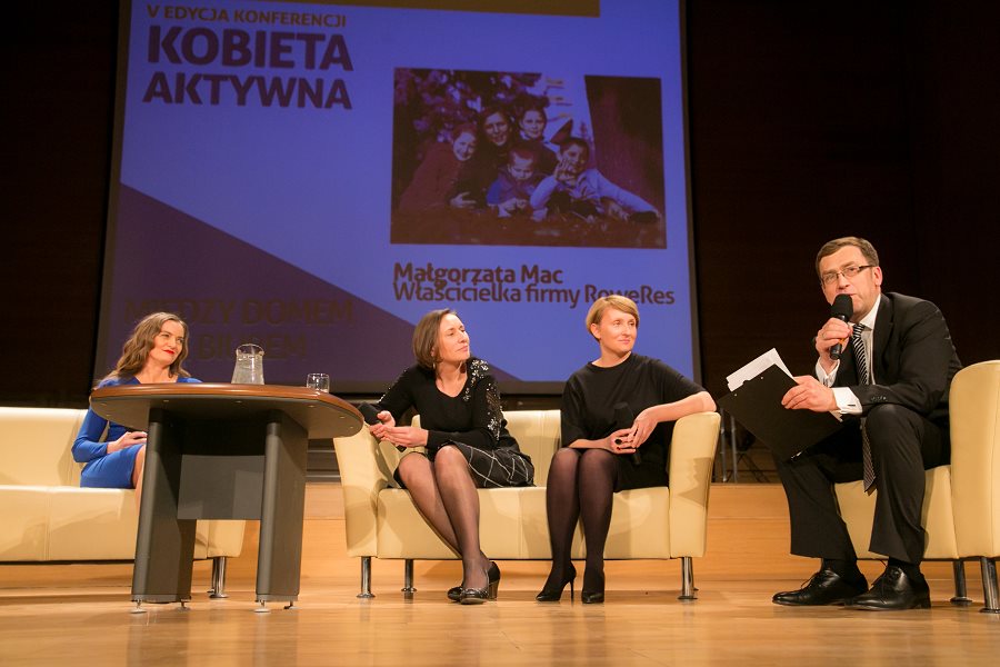 W konferencji prowadzonej przez popularnego dziennikarza i prezentera telewizyjnego, Macieja Orłosia, kobiety aktywne wzięły udział w dwóch panelach dyskusyjnych: „Między domem a biurem, czyli jak połączyć macierzyństwo z przedsiębiorczością”, gdzie bohaterkami były:  Justyna Garstecka, właścicielka firmy Motherhood z Wólki Pełkińskiej k. Jarosławia, produkująca akcesoria dla kobiet w ciąży i dzieci, prywatnie mama trójki dzieci; Barbara Gromadzka, nauczycielka i właścicielka Agencji Modelek „Akademia Stylu", mama ósemki pociech oraz Małgorzata Mac, właścicielka firmy RoweRes, mama szóstki dzieci.  I nietrudno się domyśleć, że Maciej Orłoś próbował dociec, jak można połączyć obowiązki mamy, często przy imponującej liczbie pociech z wyzwaniami zawodowymi.