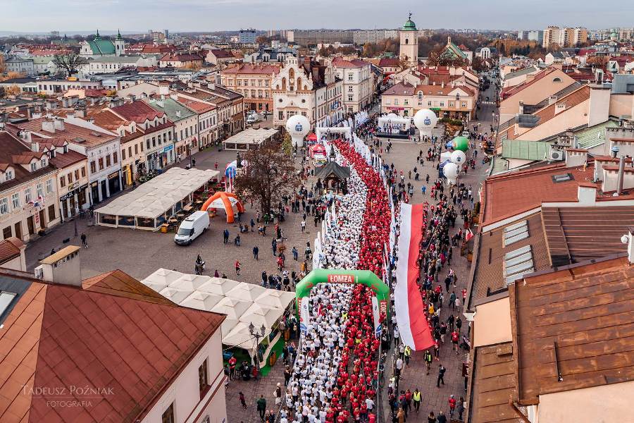 Wszyscy zawodnicy ubrani w białe lub czerwone koszulki stworzyli „żywą flagę”, a 35 osób na końcu stawki pobiegło z ogromną, 30-metrową flagę Polski, którą nieśli przez całą trasę.
