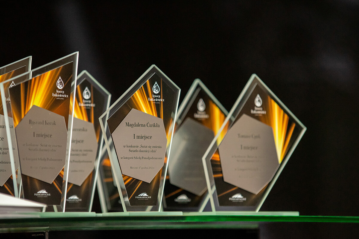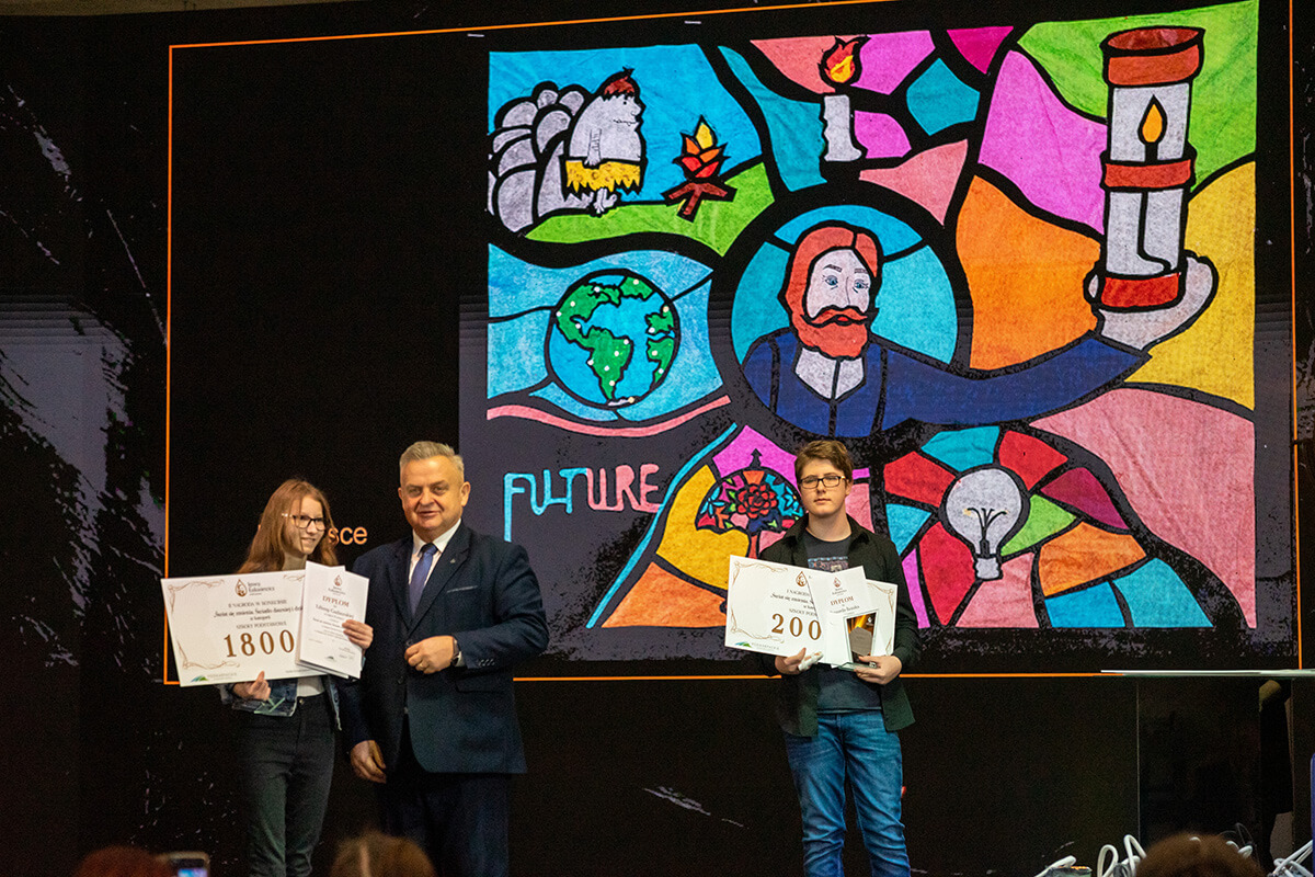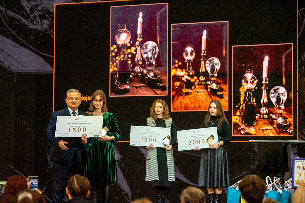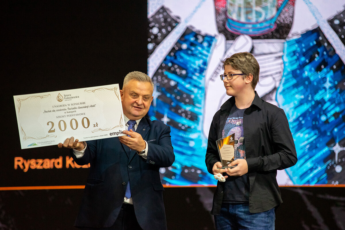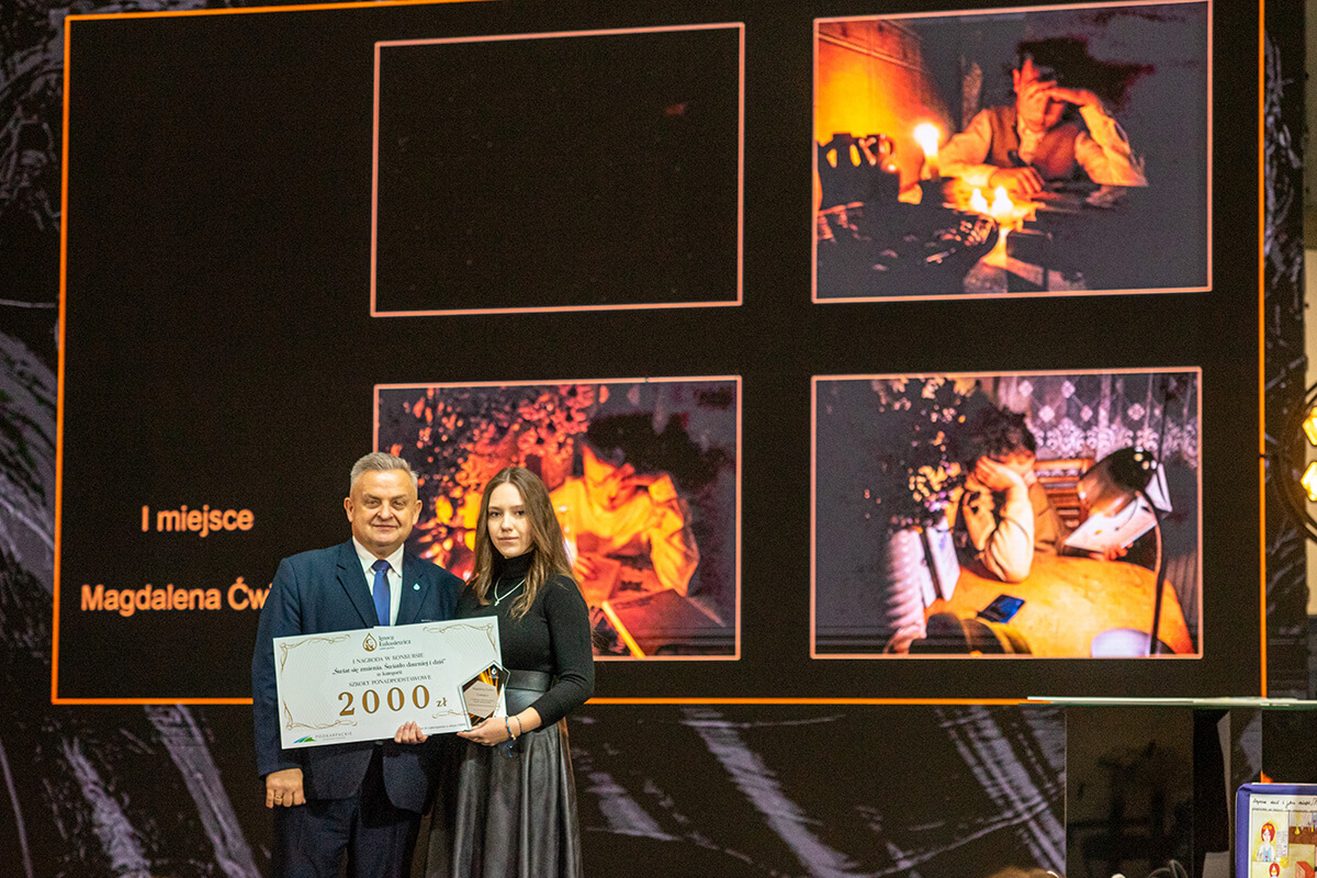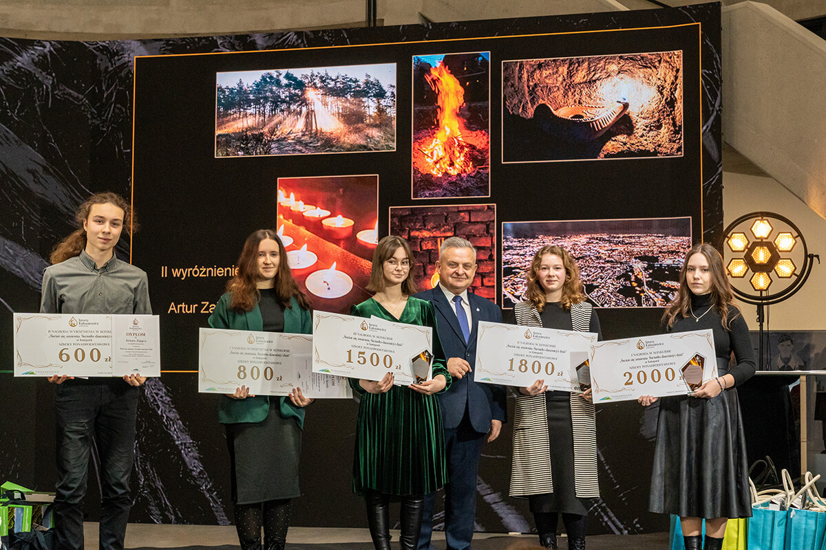 Laureaci w kategorii Szkoły ponadpodstawowe odebrali nagrody z rąk wicemarszałka Stanisława Kruczka. Fot. Krzysztof Zajączkowski