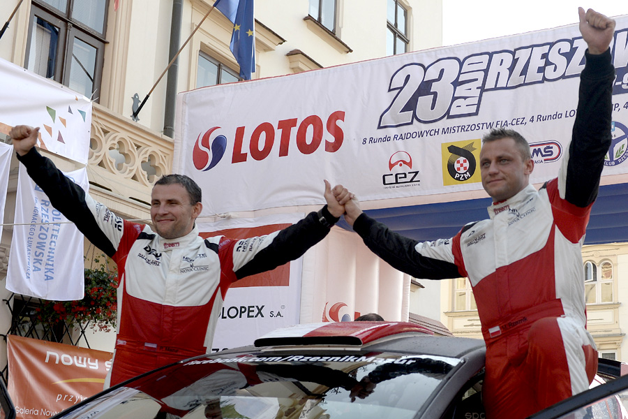 Sobota okazała się bardzo szczęśliwa dla Macieja Rzeźnika, który wspólnie z pilotem, Przemysławem Mazurem zwyciężył w 23. Rajdzie Rzeszowskim i tym samym świętował pierwszy wygrany rajd w Rajdowych Samochodowych Mistrzostwach Polski.