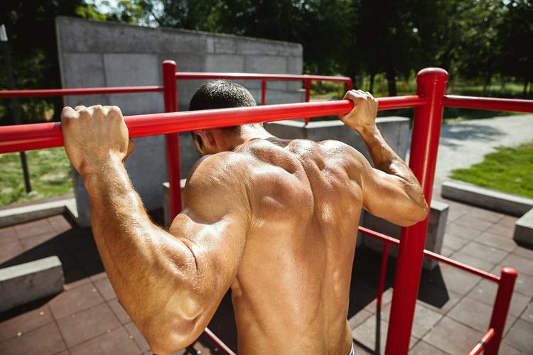 · Podciąganie na drążku szerokim uchwytem: Podciąganie to jedno z najbardziej efektywnych ćwiczeń do wzmacniania mięśni pleców, ramion i klatki piersiowej. Stanąć pod drążkiem, trzymając go szerokim uchwytem, ramiona powinny być wyprostowane. Następnie unosić ciało, aż broda znajdzie się powyżej drążka, a następnie powoli opuszczać się do pozycji wyjściowej. Powtórzyć ćwiczenie 8-12 razy.