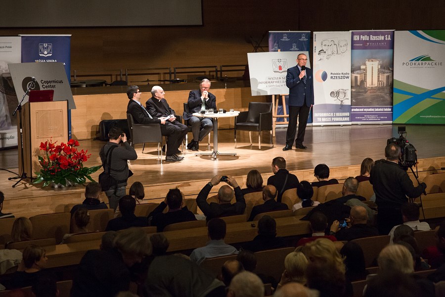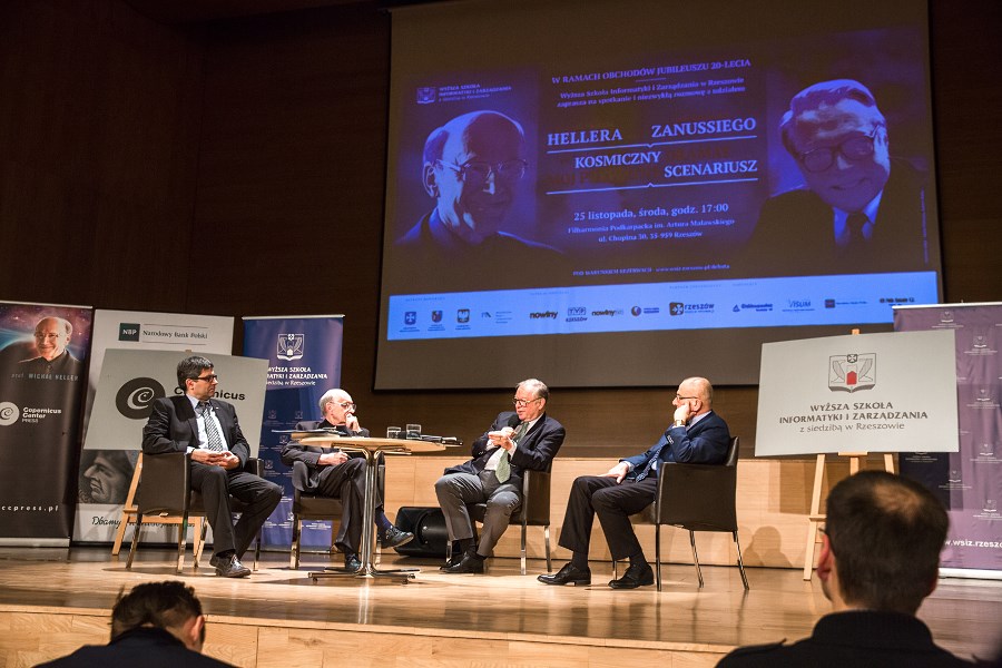 Spotkanie „Kosmiczny dramat. Mój prywatny scenariusz” było niezwykłą rozmową dwóch niezwykłych osób: ks. prof. Michała Hellera, laureata prestiżowej Nagrody Templetona, kosmologa, filozofa i teologa, oraz prof. Krzysztofa Zanussiego, wybitnego reżysera filmowego, scenarzysty, producenta, fizyka i filozofa. Spotkanie odbyło się w ramach obchodów jubileuszu 20-lecia istnienia jego organizatora - Wyższej Szkoły Informatyki i Zarządzania w Rzeszowie.