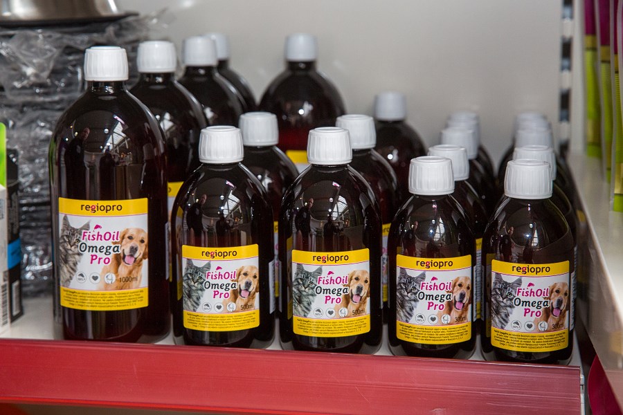 - Hitem, który wprowadziliśmy w ubiegłym roku jest olej z ryb morskich - łososia (85 proc.) i makreli (15 proc.), który sami produkujemy i sprzedajemy pod marką FishOil OmegaPro - mówi Dariusz Nycz. - To produkt, który znalazł już odbiorców w 22 krajach Europy. Dawniej babcie dawały wnuczkom codziennie tran do wpicia, aby poprawić dziecięcą odporność. W oleju z łososia znajduje się witamina Ai E, witaminy z grupy D i K oraz kwasy Omega 3 i 6 we właściwych proporcjach. Nasz olej jest surowy, nieoczyszczony i dlatego też tak bardzo psom smakuje. Nie ma w nim żadnych konserwantów. Może być przechowywany do 6 miesięcy, w temperaturze do 20 st. W miejscu zacienionym. Najlepiej przechowywać go w lodówce.