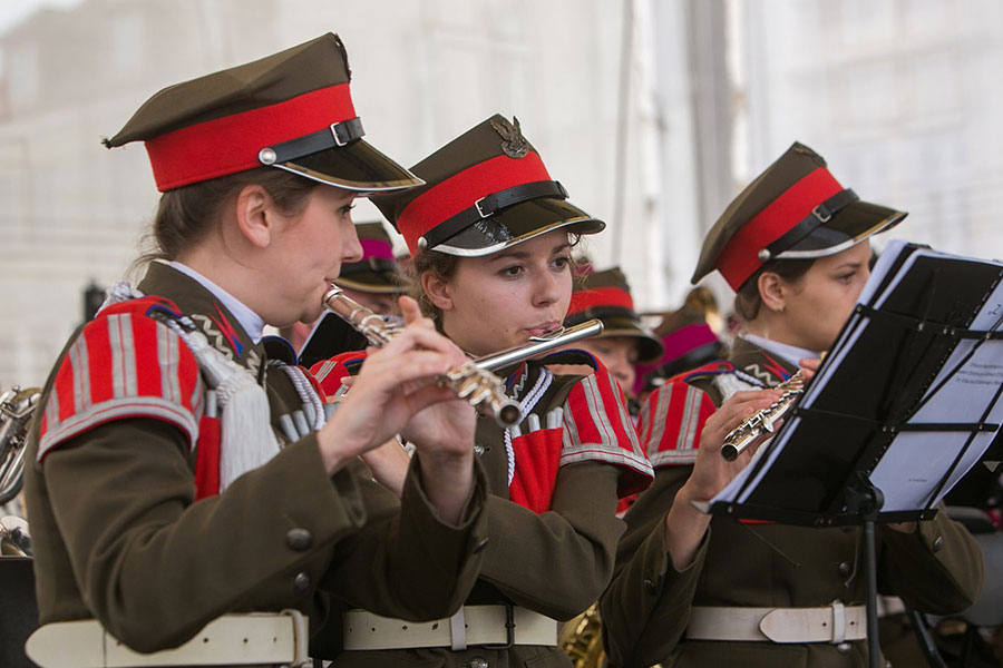 Na scenie pojawiły się również wojskowe orkiestry - Orkiestra Wojskowa z Rzeszowa oraz Orkiestra Reprezentacyjna w barwach 20. Pułku Ułanów im. Króla Jana III Sobieskiego.