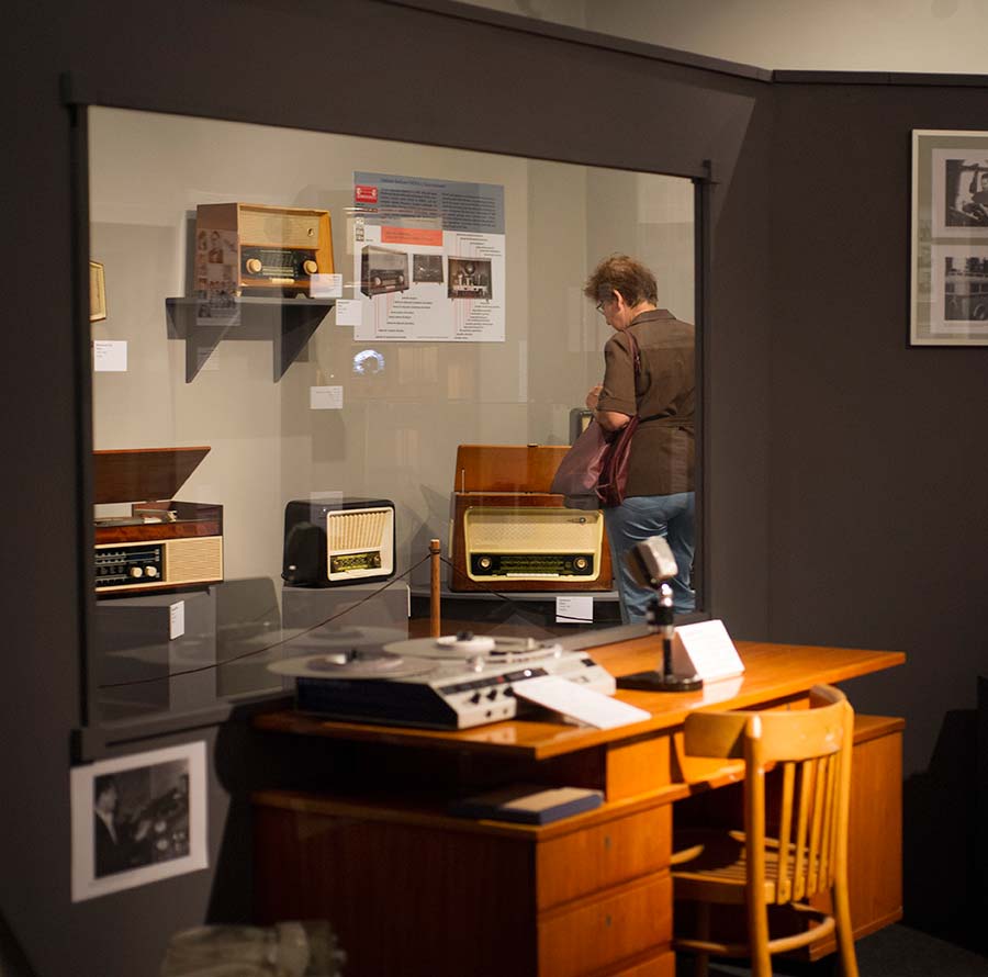 Dzięki życzliwości dyrekcji i pracowników Radia Rzeszów, na wystawie zaaranżowano również studio nagraniowe. Rozgłośnia udostępniła urządzenia do montażu materiału dźwiękowego z lat '70, magnetofony szpulowe i mikrofony, z jakimi reporterzy niegdyś pracowali w studio i w terenie.