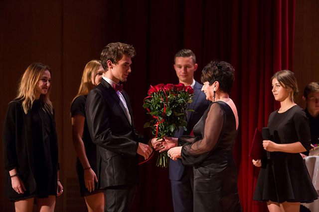 W dużej sali Filharmonii na widowni zasiedli m.in. emerytowani nauczyciele, z pierwszym dyrektorem Adolfem Gubernatem na czele, oraz absolwenci różnych roczników i obecni uczniowie.