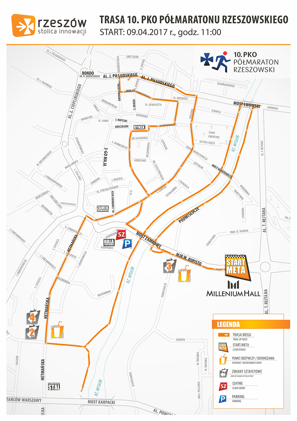 Godzinę później, czyli o godz. 11 odbędzie się 10. PKO Półmaraton Rzeszowski. W tym roku jego trasa jest zmodyfikowana, ze względu na trwającą przebudowę ulicy 3 Maja.