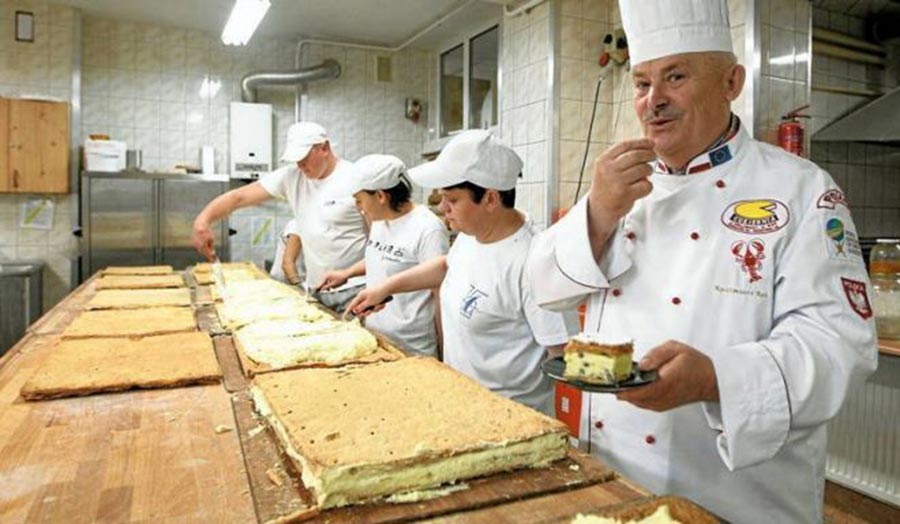 Gigantyczną kremówkę - 97 metrów słodkiego ciasta - przygotowują dla mieszkańców Rzeszowa (i nie tylko) rzemieślnicy Cechu Rzemiosł Różnych. Kremówka powstaje w Cukierni Julian Orłowski & Kazimierz Rak, która od 11 lat szykuje ulubione ciasto papieża Jana Pawła II z okazji jego urodzin - Moim marzeniem jest, aby zrobić 100 metrów kremówki z okazji setnych urodzin papieża. Mam nadzieję, że zdrowie mi na to pozwoli. Potem pałeczkę oddajemy młodym – mówi Kazimierz Rak.