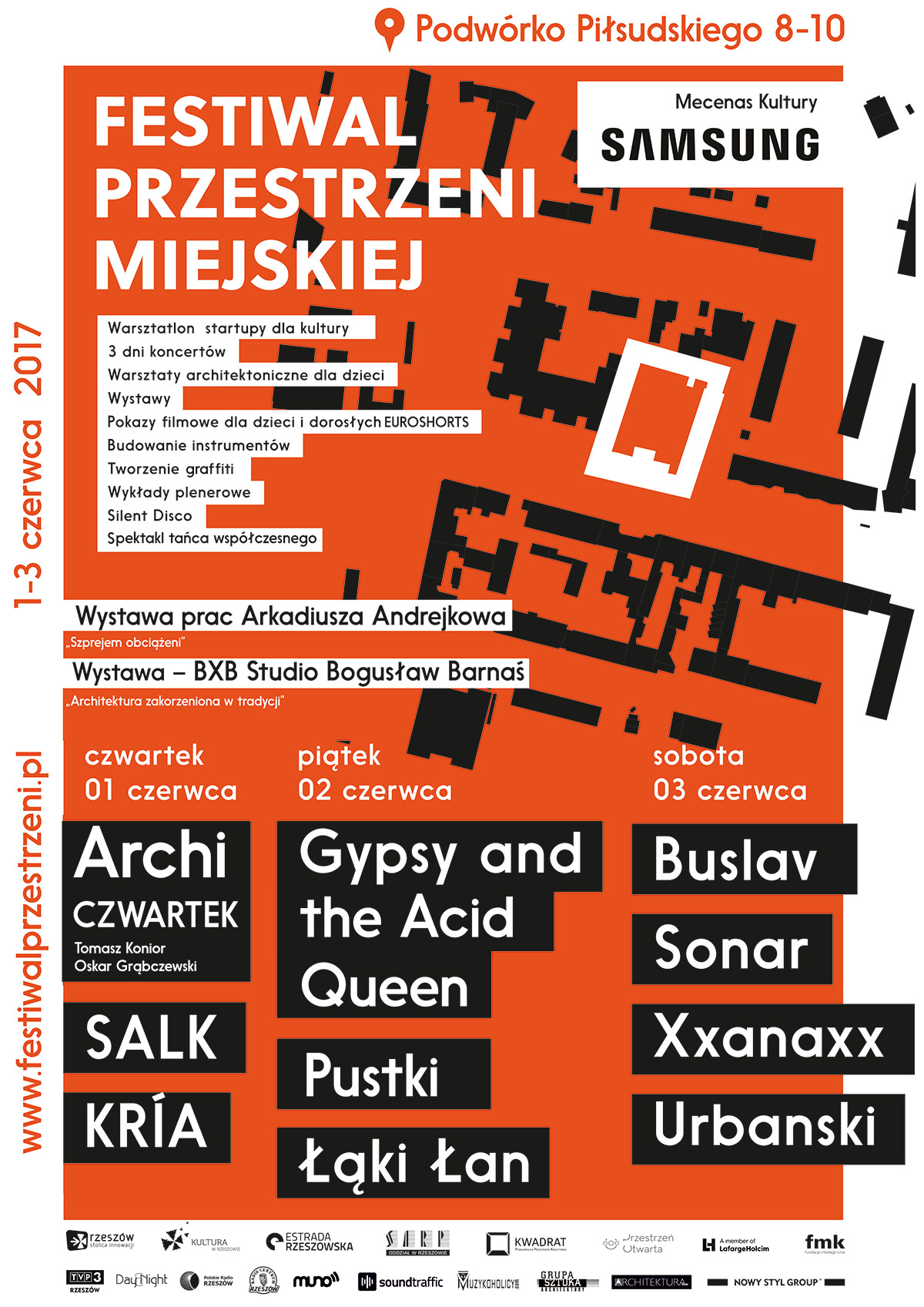 Były już hale fabryki Zelmer, hale obrabiarek PKP i fosa rzeszowskiego Zamku. Tym razem miejscem festiwalowych wydarzeń będą klimatyczne wnętrza i dziedziniec kamienicy przy al. Piłsudskiego 8-10. Organizatorzy tak ułożyli program, że jest o n atrakcyjny nie tylko dla zainteresowanych architekturą i miejską przestrzenią, ale także muzyką, literaturą i filmem. W ciekawych warsztatach mogą wziąć udział dzieci.