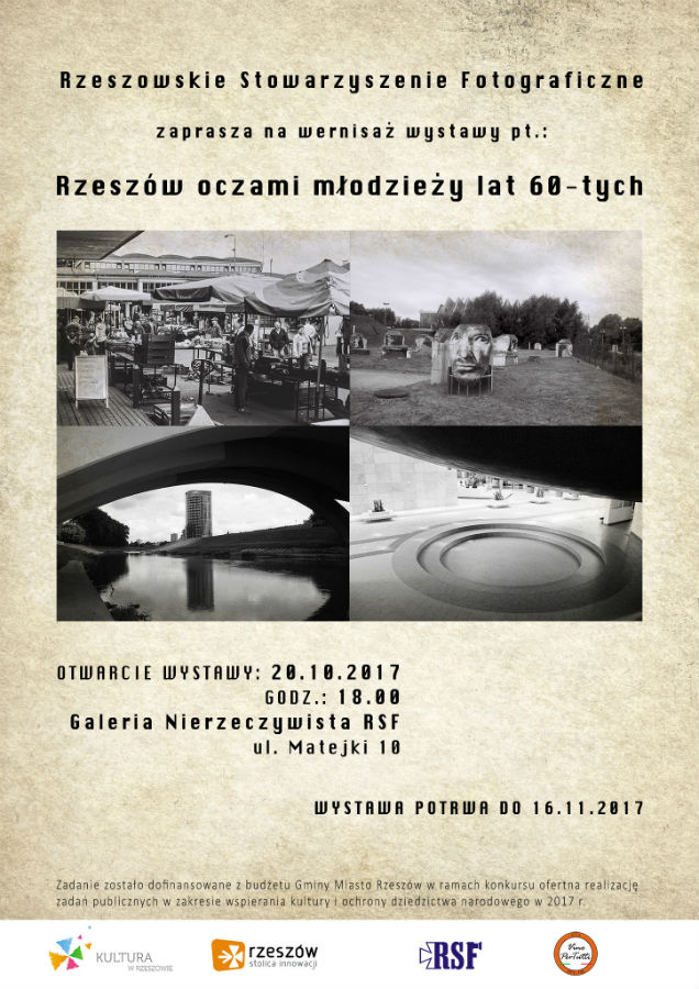 Od piątku w Galerii Nierzeczywistej w Rzeszowie wystawa, która jest podsumowaniem warsztatów fotografii analogowej. Tym razem, do udziału w zajęciach została zaproszona "młodzież lat 60-tych". Efektem ich pracy są fotografie, które prezentują codzienne życie Rzeszowa, walory architektoniczne miasta oraz jego aspekt społeczny.