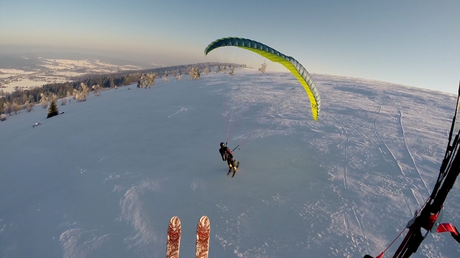 To nowy rodzaj narciarstwa, którego istotą nie jest jazda na nartach w dół stoku, lecz - jazda w dowolnym kierunku, również i pod górę, oraz pokonywanie dowolnych dystansów przy wykorzystaniu wiatru jako siły pociągowej. Narciarz zaopatrzony jest w skrzydło o specjalnej konstrukcji zbliżonej do mini paralotni, w którą łapie wiatr i dzięki temu swobodnie przemieszcza się. Co więcej narciarz nie tylko ślizga się po śniegu, lecz może nawet unieść się w powietrze, wykonać niski, krótki lot, po czym miękko opaść na ziemię i jechać dalej.