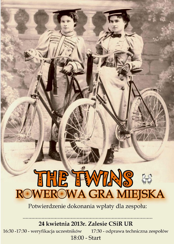 Już można zapisywać się na I edycję Rowerowej Gry Miejskiej – The Twins, która odbędzie się 24 kwietnia br. na Zalesiu w Rzeszowie. To zabawa dla dwuosobowych zespołów.