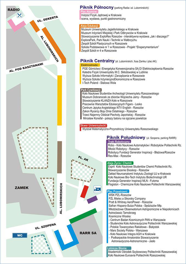 Piknik Centralny, rozciągający się wzdłuż dolnego odcinka al. Lubomirskich, obejmujący również plac AK oraz zamkową fosę, tworzyć ją będą „Elektrostrada”, „Park Cywilizacji” oraz „Skwer Uniwersytecki”. Patronat nad tym piknikiem sprawuje Wydział Matematyczno-Przyrodniczy Uniwersytetu Rzeszowskiego. Natomiast „Park Cywilizacji” to stoiska archeologiczne, rekonstrukcje historyczne, pokazy sztuki, kaligrafii, garncarstwa i animacji, oraz edukacyjne zabawy dla najmłodszych. W fosie zamku chętni będą mogli wznieść się w powietrze w prawdziwym balonie. Atrakcją będzie też „Elektrostrada”, która pokaże jak wielkie znaczenie ma dla nas elektryczność.