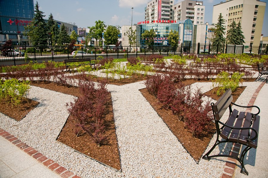 W centralnym punkcie ogrodów bernardyńskich, które powstały nad istniejącym parkingiem, znalazły się oczko wodne i fontanna. W planach jest postawienie tu figury św. Franciszka. Na terenie ogrodów znajduje się plac w kształcie koła, na którym przy większych uroczystościach czy koncertach będzie konstruowana scena.