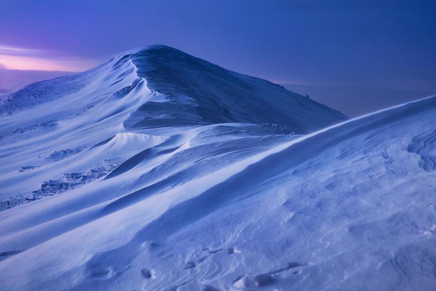 Zawiało i zasypało. Zachód słońca na Połoninie Caryńskiej