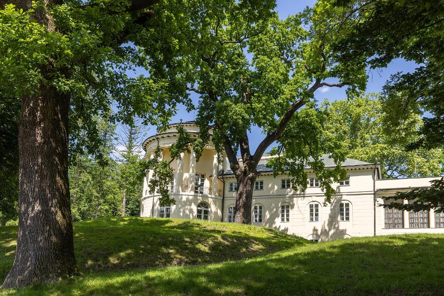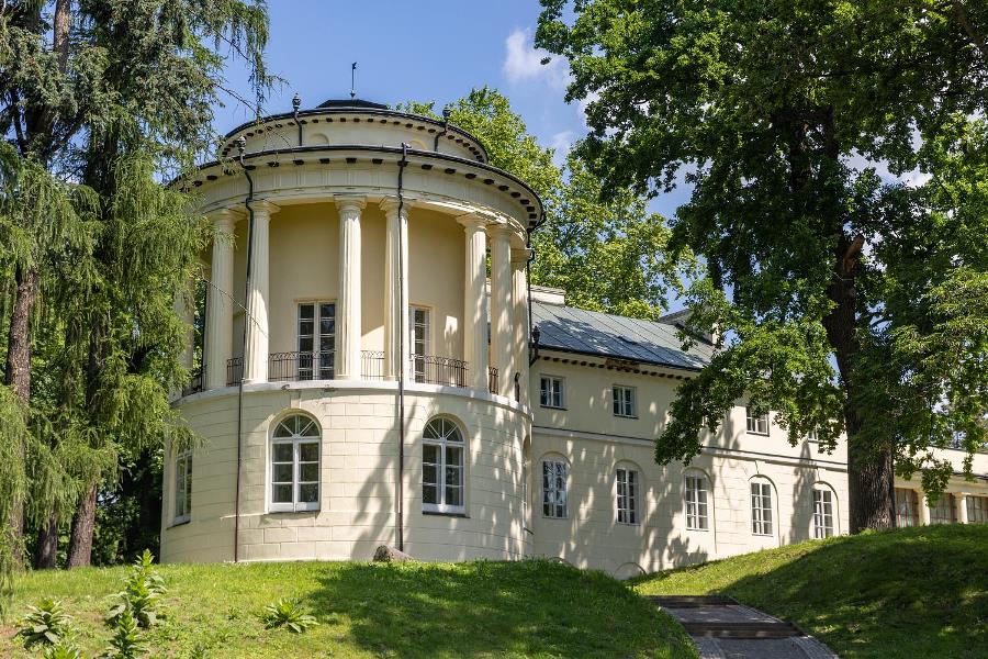 W górnej części wspomnianej Rotundy przyciąga uwagę jedyny ocalały parkiet wykonany z kilku gatunków drewna. Są to: czeczotka, brzoza, jawor, śliwa i cis. Prezentowany jest tutaj komplet eleganckich empirowych mebli, którym konserwatorzy na podstawie rycin z 1836 r. przywrócili dawny wygląd. Wnętrze zdobią oryginalny piec kaflowy oraz kominek, na którym ustawiono rzeźby i kandelabry. Dolna część Rotundy jest pusta. Była to sala balowa. Przed 1831 r. przyjeżdżali tu znamienici goście: księżna Izabela Czartoryska, książę Henryk Lubomirski – założyciel Muzeum Książąt Lubomirskich we Lwowie, hrabia Adam Rościszewski – znany kolekcjoner i mecenas sztuki, ks. Franciszek Siarczyński – przyszły dyrektor Ossolineum, Franciszek Ksawery Prek – pamiętnikarz i malarz oraz inni.