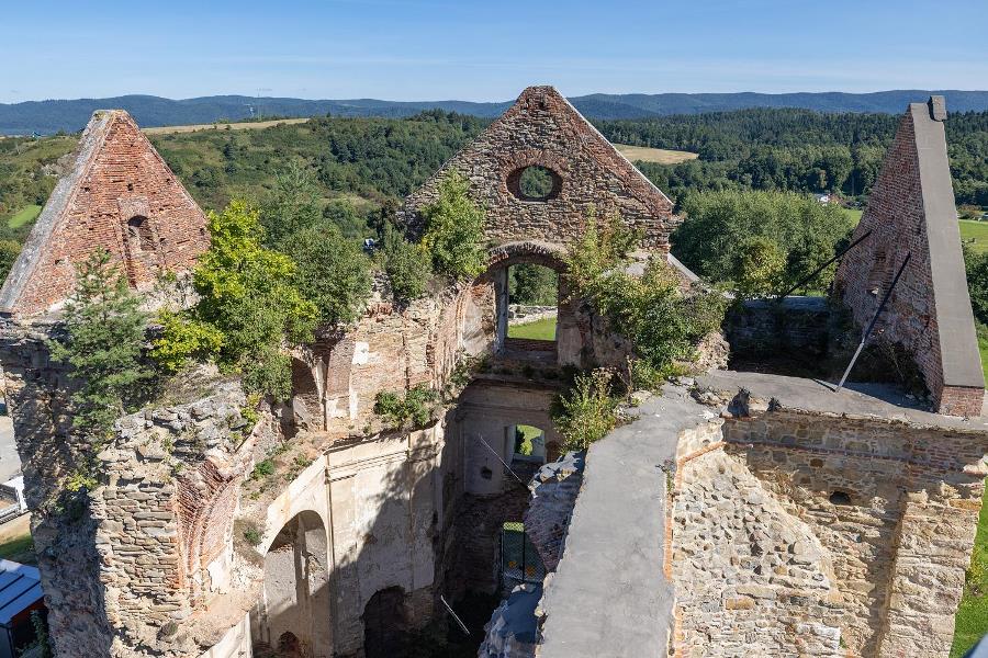 Po przekroczeniu bramy obronnej widać, że  obiekt ma dobrego gospodarza. Od strony rzeki Osławy został starannie odtworzony ogród klasztorny. Trwa zabezpieczenie ruin. Turystom została udostępniona baszta widokowa. Kontynuowane są prace przy dzwonnicy oraz we wnętrzu kościoła. Obowiązuje tu zakaz wstępu do czasu zakończenia robót. Kiedyś były powszechnie dostępne dla zwiedzających, choć z murów spadały kamienie i cegły. Na dziedzińcu gospodarczym odtworzony został stylowy pawilon studzienny. Studnia nie została jeszcze zbadana, choć można spodziewać się tam interesujących odkryć archeologicznych.