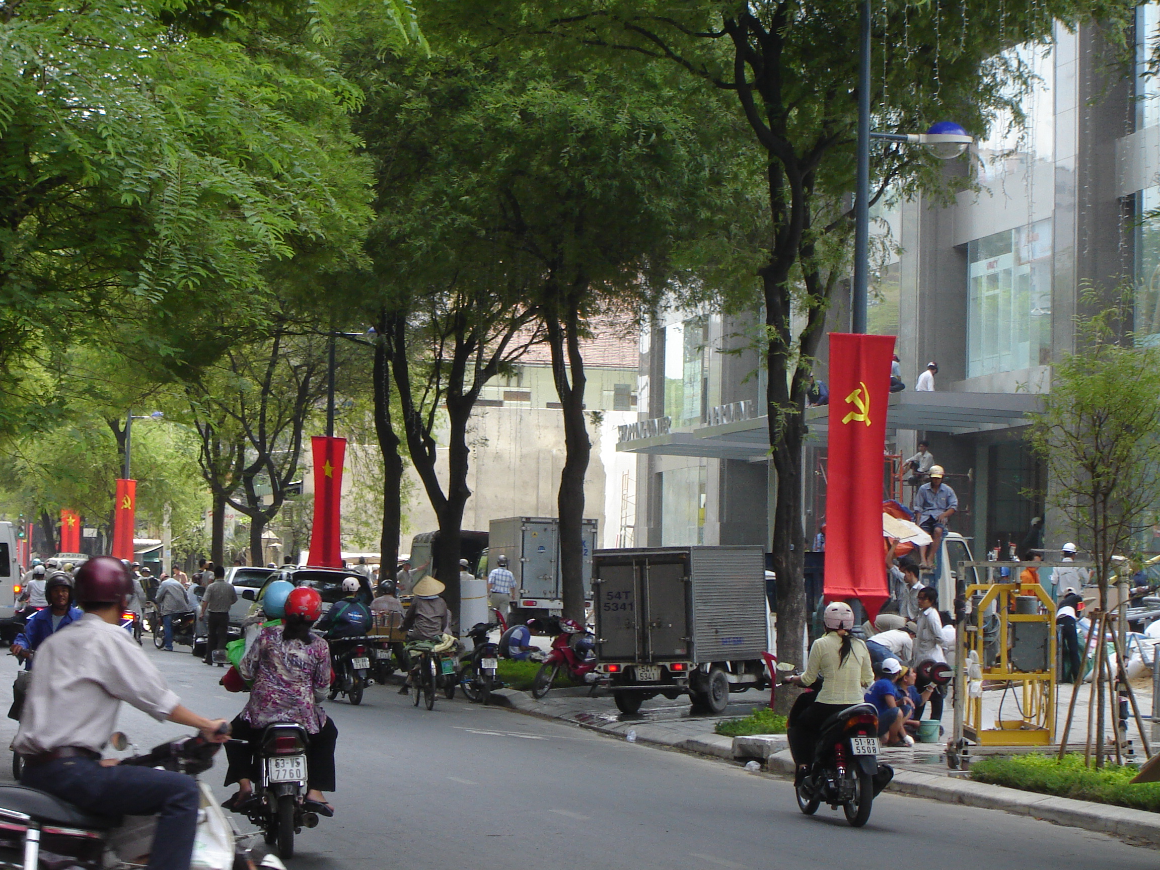 W Sajgonie (aglomeracja Ho Chi Minh), dziesięć lat później i setki kilometrów na południe od Hanoi oraz wiosek Czamów, pytania o traumatyczną przeszłość wydają się całkowicie nie na miejscu. Mimo że jestem w Sajgonie w ostatnich dniach kwietnia, tuż przed rocznicą wyzwolenia miasta i zjednoczenia Wietnamu, a ulice wprost toną w czerwonych flagach, na których na zmianę żółcą się gwiazdy, sierpy i młoty. A co jakiś czas wielki billboard przypomina o tym, że kilkadziesiąt lat temu Wietnamczycy odnieśli historyczne zwycięstwo. Tyle że na jeden billboard z wybijającą się liczbą „35”, przypada zwykle kilkanaście billboardów z wybijającymi się liczbami idącymi w miliony (bo denominacji tu dawno nie było), podkreślającymi „okazyjne” ceny, za jakie można nabyć telewizory, skutery, domy czy jakieś dziwne urządzenia japońskiego projektu, których przeznaczenie znają chyba tylko w Azji. Czerwone flagi z sierpem i młotem ciekawie komponują się z wystawami butików Armaniego czy Gucciego, przed którymi powiewają.