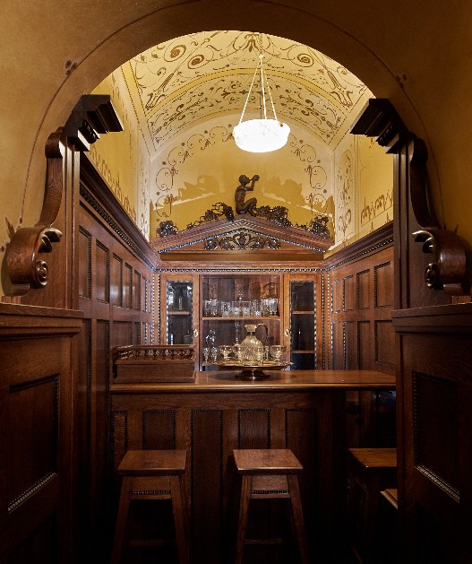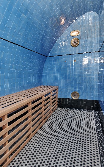 Podczas restauracji zabytku starano się jak najwierniej skopiować wnętrza łaźni, poprzez zastosowanie oryginalnych elementów, takich jak np. podobne oryginalne kurki, rury, urządzenia natryskowe. Turyści odwiedzający spa mogą również zobaczyć m.in. odtworzony elegancki gabinet wypoczynkowy, wraz z meblami z drewna dębowego. Do piwnic wchodzi się jednobiegowymi, drewnianymi dębowymi schodami, prowadzącymi z parteru do łaźni. Niezwykłym wyzwaniem było zrekonstruowanie instalacji wodno-kanalizacyjnych, a także wszystkich urządzeń kąpielowych, do masażu oraz fizjoterapii. W ramach projektu uzupełniono również ubytki w zachowanych kafelkach oraz w całości odtworzono ścienne malowidła.