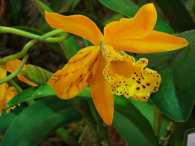 W czasie, gdy w łańcuckiej storczykarni niepodzielnie kwitną katleje, przychodzi też czas na bardzo rzadkie, szalenie ciekawe storczyki – paphiopedilum. Przy eleganckich, dostojnych katlejach, te zaskakują elektryzującą żółcią płatków, gdzie kwiat zdaje się być buzia jakiegoś stworzonka.