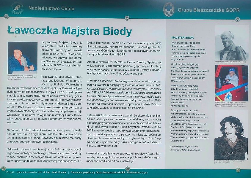 W sobotę, 13 maja o godz. 17.00 w Starym Siole w Wetlinie odsłonięcie pamiątkowej ławeczki Władysława Nadopty, legendarnego „Majstra Biedy” z piosenki Wojtka Bellona. Wędrując na Przełęcz Orłowicza, choć na chwilę będzie można przysiąść przy lwowiaku, którego w Bieszczadach znali wszyscy.  Koncert Wolnej Grupy Bukowina też będzie.
