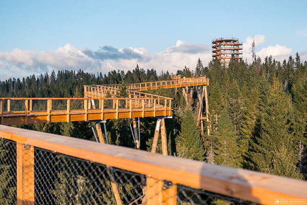 Cały drewniany szlak o łącznej długości 1 234 metrów poprowadzony jest spiralnie nad koronami drzew. Maksymalna wysokość szlaku wynosi 24 m i kończy się okrągłą wieżą widokową o wysokości 32 metrów. Z wieży roztacza się imponujący widok na panoramę Tatr Bielskich, Zamagórza, Pienin z Trzema Koronami oraz Zamkiem w Niedzicy.