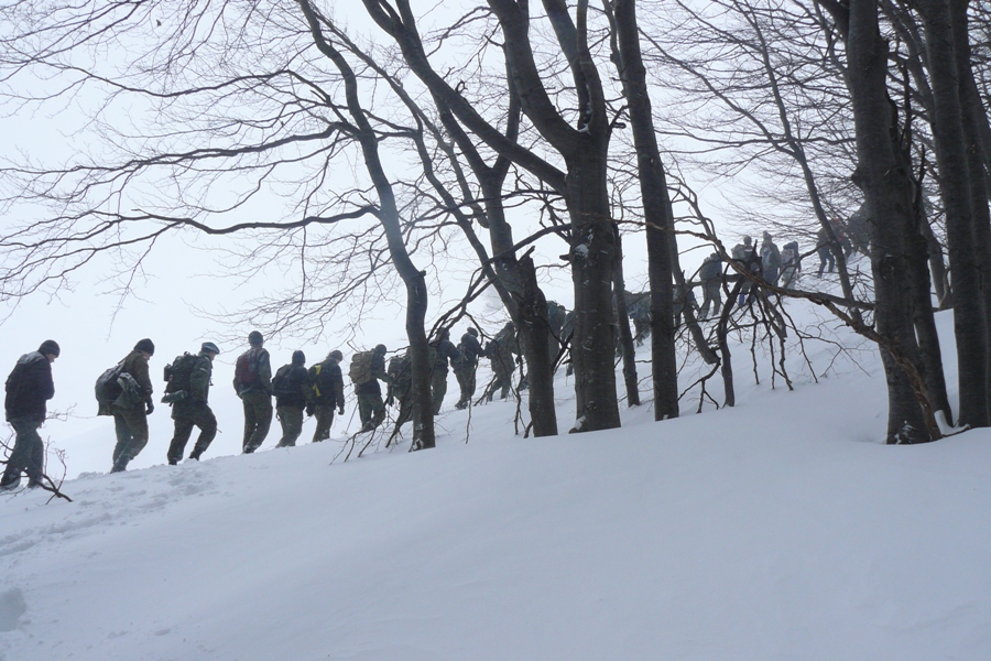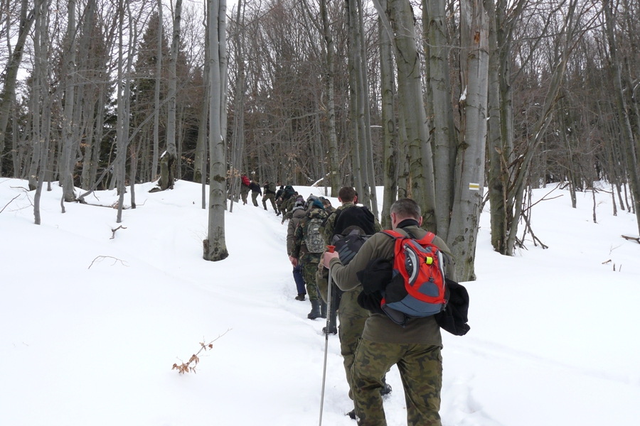 W Górnym Starym Siole, skąd prowadzi szlak na Smerek, przywitała nas słoneczna pogoda, więc ze zdziwieniem przyjąłem informację z domu, że w Rzeszowie prószy śnieg. W marszu przeszkadzały jedynie zaspy, dochodzące miejscami nawet do metra głębokości, a także miejsca, gdzie śnieg był bardzo wyślizgany. Ponieważ ksiądz kapelan, który miał wędrować z nami, dzień wcześniej się rozchorował, rozważania Drogi Krzyżowej prowadzili sami strzelcy. Na trasie doszlusowaliśmy do grupy z księdzem, zorganizowanej przez PTTK z Sanoka, i dalej słuchaliśmy już rozważań prowadzonych przez kapłana.