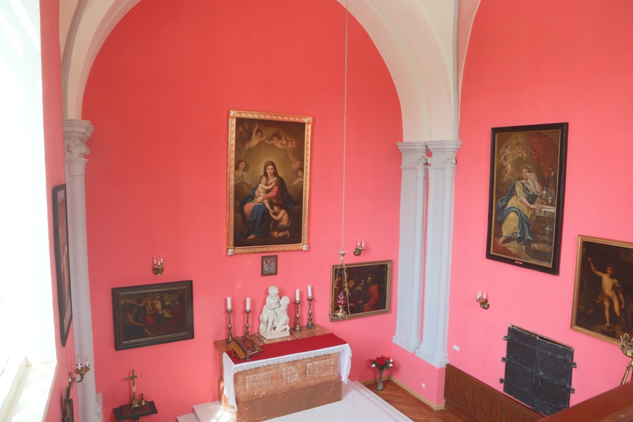 Odtworzenie wnętrz parteru wymagało wiele starań i pracy, której daleko do końca. Dziś zwiedzający - oprócz sześciu piwnic - może obejrzeć osiem pomieszczeń parteru. Zwiedzanie rozpoczyna od neogotyckiej Kaplicy, na której ścianach oglądamy malarstwo włoskie. Nad ołtarzem wisi wizerunek Madonny z Dzieciątkiem namalowany przez Domenica del Frate w 1806 roku na zamówienie właścicieli. Na neogotyckiej mensie ołtarzowej (kopia, oryginał znajduje się u tarnobrzeskich dominikanów) stoi rzymska rzeźba „Chrystus i św. Jan Chrzciciel jako bawiące się dzieci”- dzieło Gianlorenza Berniniego. Okno z kutą okiennicą z XVII stulecia pozwalało hrabiemu na uczestnictwo w nabożeństwie bez wychodzenia z sąsiedniego pomieszczenia – Biblioteki. Neogotyckie szafy, zdobione XVIII-wiecznymi sztychami, są prawie puste. Muzeum pozyskało za to księgozbiór Jana Nowaka-Jeziorańskiego: ponad 900 woluminów rzadkich w kraju książek i czasopism emigracyjnych.