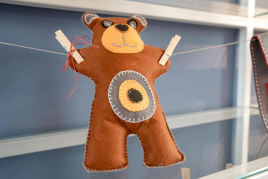 W sali ekspozycyjnej oglądamy wystawę ludowych makatek. Te stare różnią się od współczesnych tylko odcieniem bieli haftowanego materiału. Wśród tradycyjnych motywów pojawia się jeden współczesny: to hasło ekologiczne.