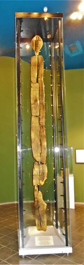 Wysoka smukła postać wyryta kamiennym narzędziem w modrzewiowej desce. Duża trójwymiarowa twarz. Długi korpus ozdobiony tajemniczymi znakami, liniami, zygzakami, strzałkami. Stoi w szklanym sarkofagu, zbudowanym według najnowszych kosmicznych technologii. Światła w sali, gdzie pośrodku ustawiono sarkofag, są przyciemnione, specjalnie dobierane. Okna zasłonięte. Półmrok; cisza. Żadnych odgłosów półtoramilionowego miasta, które tętni życiem tuż obok. Tutaj jest osobny odrealniony świat. I mnóstwo pozytywnej energii. Niesamowite przeżycie.