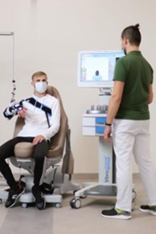 Urządzenie Vibramoov (Ryc. 1) oferuje wsparcie konwencjonalnej terapii poprzez utrzymanie funkcjonalnej interakcji między ruchem a propriocepcją. Moduły wibracyjne umieszczone na ciele pacjenta stymulują układ nerwowy za pomocą odczuć sensorycznych występujących podczas naturalnego ruchu. Zogniskowana wibracja może zostać bezpiecznie zastosowana na bardzo wczesnym etapie usprawniania, co wpływa na zmaksymalizowanie tempa powrotu utraconych funkcji motorycznych. Długotrwały bezruch wywołuje skutki, które mogą być trudne do przezwyciężenia, gdy terapia z pacjentem jest opóźniona.