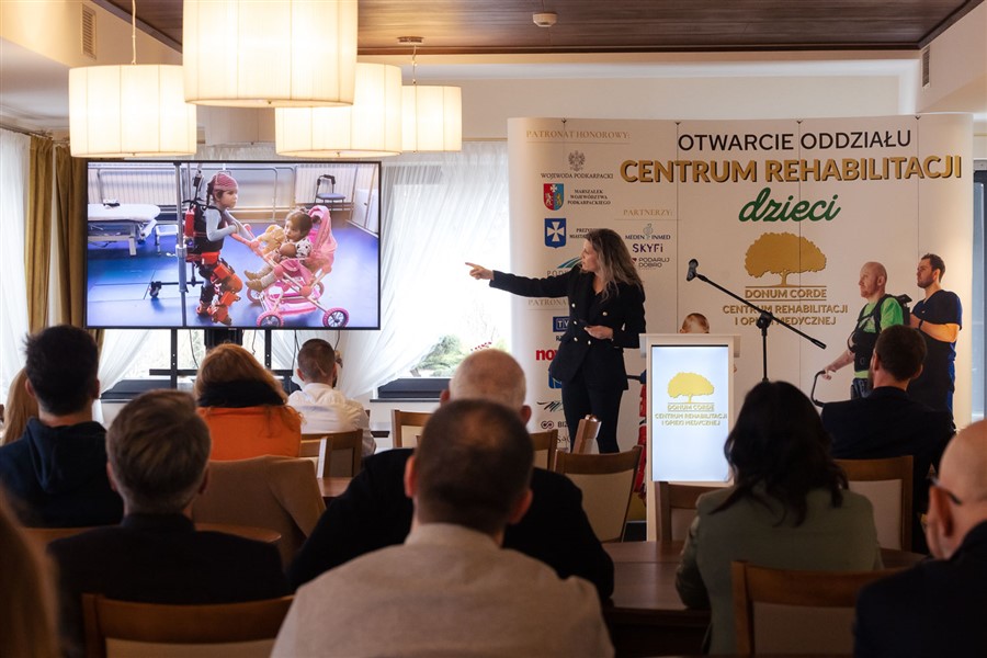 Jedyny w Polsce egzoszkielet do rehabilitacji niepełnosprawnych dzieci i automatycznej nauki chodu właśnie trafił na Podkarpacie – do nowego Centrum Rehabilitacji Dzieci Donum Corde w Budach Głogowskich niedaleko Rzeszowa, otwartego w piątek 3 marca. To jeden z najnowocześniejszych ośrodków w kraju, który śmiało sięga po technologiczne nowinki, by poprawiać jakość życia pacjentów z porażeniem mózgowym, SMA i ciężkimi urazami.