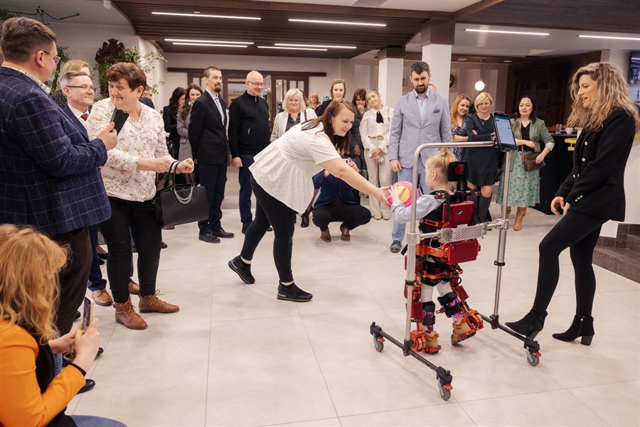 - Egzoszkielet pediatryczny hiszpańskiej firmy Marsi Bionic to obecnie jedyne na świecie dostępne w sprzedaży urządzenie, które pozwala na terapię dzieci. Wprowadzono je dopiero w ubiegłym roku, a już jest dostępne w Polsce – zauważa Krzysztof Cugoń, dystrybutor na Polskę. - Zostało zaprojektowane z myślą o dzieciach z SMA i mózgowym porażeniem dziecięcym. Można w nim prowadzić rehabilitację dzieci o wzroście 100-130 cm, nie cięższych niż 35 kg. Egzoszkielet pozwala dzieciom chodzić do przodu i do tyłu, może działać całkowicie automatycznie, ale także z oporem i wykonać krok dopiero, kiedy dziecko wywrze na nie odpowiedni nacisk. Terapeuta puszcza dziecko w tej platformie i może z nim pracować ustawiając się z przodu, z boku lub z tyłu i podając np. piłkę angażować całe ciało pacjenta, uruchamiać cały aparat mięśniowy. Tym samym egzoszkielet obok nauki chodzenia służy kompleksowej rehabilitacji. Możliwość pionizacji, takiego wspomaganego chodzenia i poznawania dzięki temu świata ma ogromny wpływ na jakość życia pacjentów. Badania pokazują, że bardzo poprawia się postrzeganie siebie, wzrasta społeczna akceptacja.