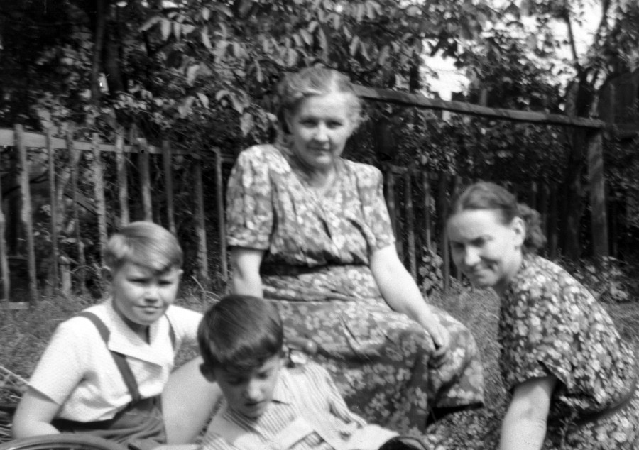 Maj 1956, ogród przy ul. Grottgera w Rzeszowie. Od lewej: Andrzej Ciepliński, Tadeusz Bieda, Jerzy Klus.