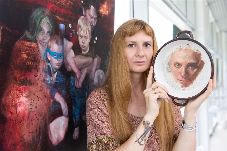 A teraz robi doktorat. Maluje macierzyństwo. Nie wyidealizowane, ale prawdziwe. Codzienność. Nie musi wymyślać tematów. Wystarczy się rozejrzeć, a inspiracja sama się tworzy. Taka sytuacja z myciem naczyń. Jeszcze zanim kupili zmywarkę. - Dzień w dzień zaciskasz zęby i szorujesz – mówi Barbara. - Miałam taką patelnię, wciąż się coś na niej przypalało. Pewnego dnia znów ją szorowałam. Przerwałam, podniosłam znad zlewu, żeby zobaczyć, czy już wszystko udało się zmyć i zastygłam wpatrzona w jej strukturę. Gdzieniegdzie przetarta, z odpryskami. „Ciekawe, jak się na niej maluje”, pomyślałam i ruszyłam do pracowni. Namalowałam na niej odbijającą się moją zmęczoną twarz.