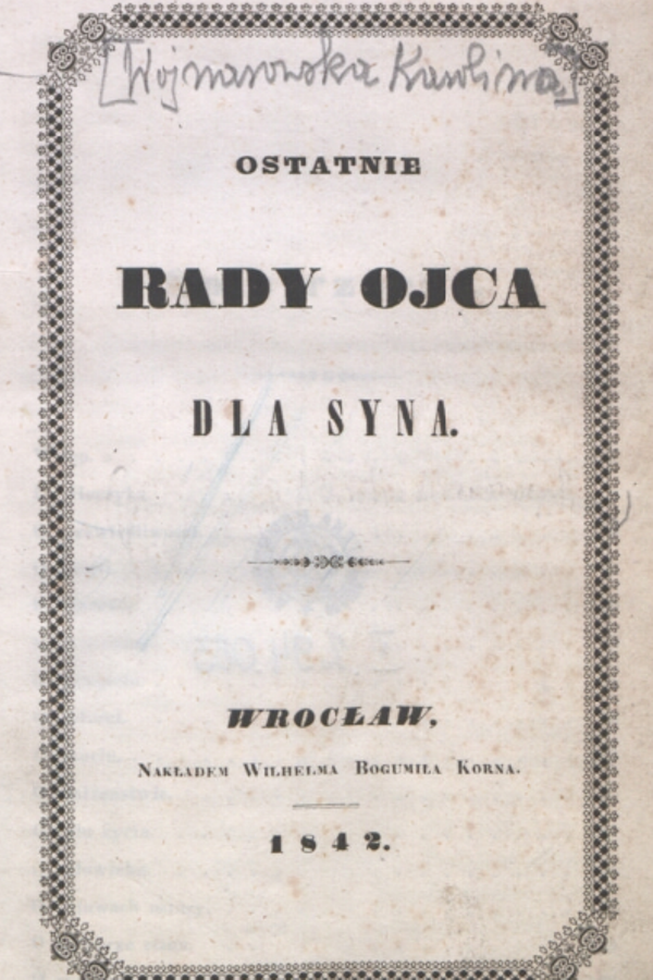 Warto dodać, że w 1819 roku ukazała się „Pamiątka po dobrej matce” Klementyny z Tańskich Hoffmanowej. Do tej właśnie publikacji odnosi się narrator „Ostatnich rad ojca dla syna” tłumacząc skromnie, że „Pamiątka po dobrej matce” korzystnie skutkowała na wychowanie kobiet, dlatego i „Ostatnie rady...”, choć nie tak mistrzowskie, okażą się potrzebne dla płci męskiej. Karolina Wojnarowska musiała dobrze znać dzieło Hoffmanowej, a kto wie – może według zawartych tam rad była wychowywana? Obydwa utwory zresztą są podobne w konstrukcji i przesłaniu. Hoffmanowa wydała tę książkę pod pseudonimem „młoda Polka”. Dokładnie takiego samego pseudonimu używała Wojnarowska, co pozwala sądzić, iż połomska pisarka inspirowała się Hoffmanową.