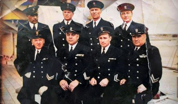 Podoficerowie marynarki. Drugi od prawej w drugim rzędzie starszy bosman Szopa, 1946 r. Fot. Archiwum Rodziny Szopów