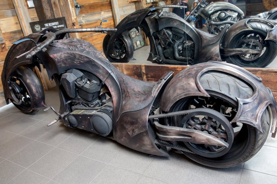 W kilka miesięcy powstały dwa niezwykłe pojazdy – Drag i Chopper. Drag – mroczny, przypominający czającego się do skoku drapieżnika o głowie przypominającej Aliena, bo to pojazd inspirowany twórczością H.R. Gigera, artysty, który Myszkowskiego najmocniej inspiruje. Za to Chopper jest jak z innej bajki – cukierkowy, w odcieniach czerwieni i nieprzyzwoicie ociekający chromem i brokatem, bo w świecie motocyklistów nie ma miejsca na skromność. Wykonany z dbałością o detale , o przepięknie malowanej ramie i  według idealnych, kobiecych proporcji 90-60-90. To on otrzymał nagrodę publiczności na zlocie w Austrii, w którym uczestniczyło 110 tysięcy motocykli. W sześć miesięcy od założenia firmy.