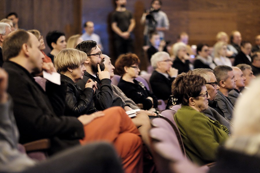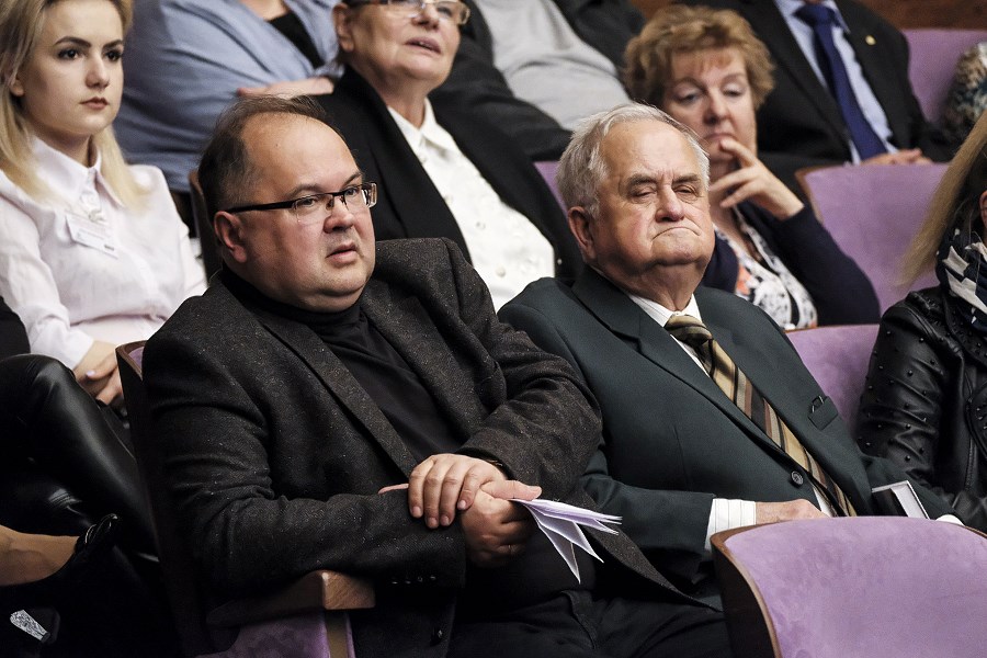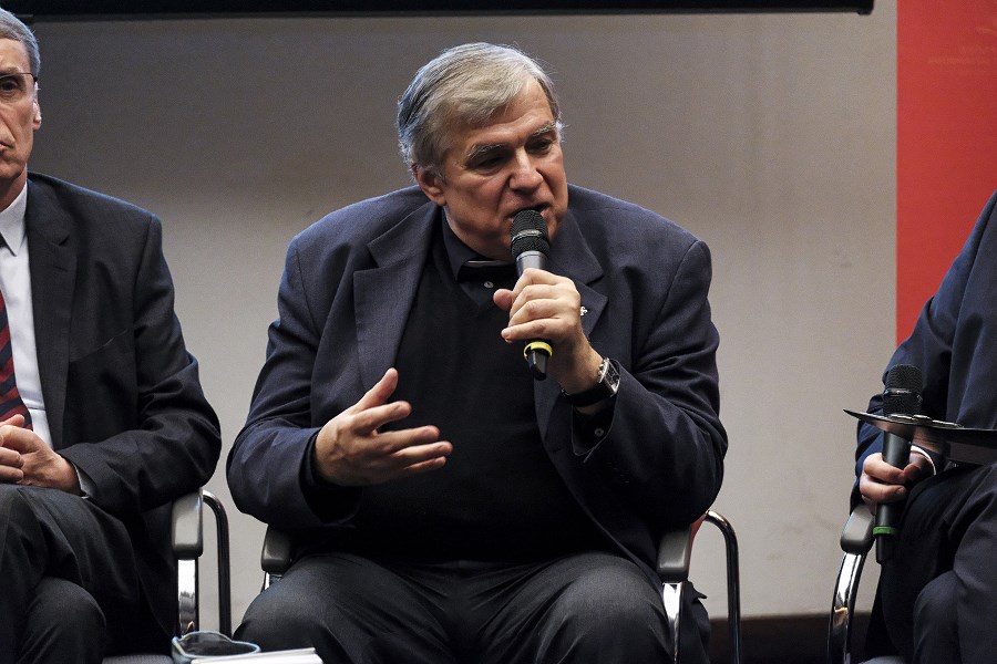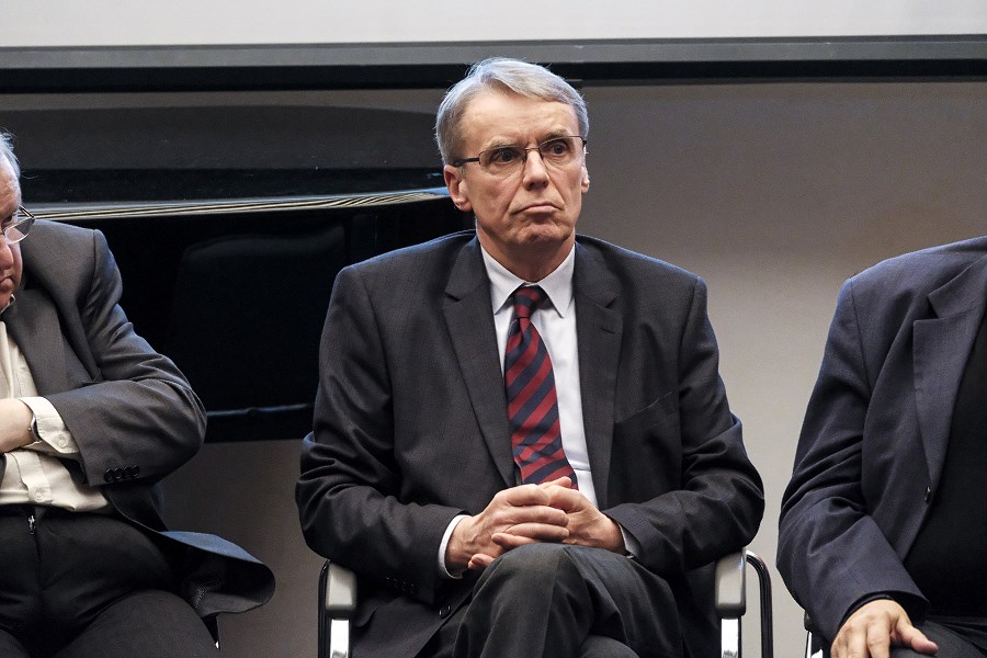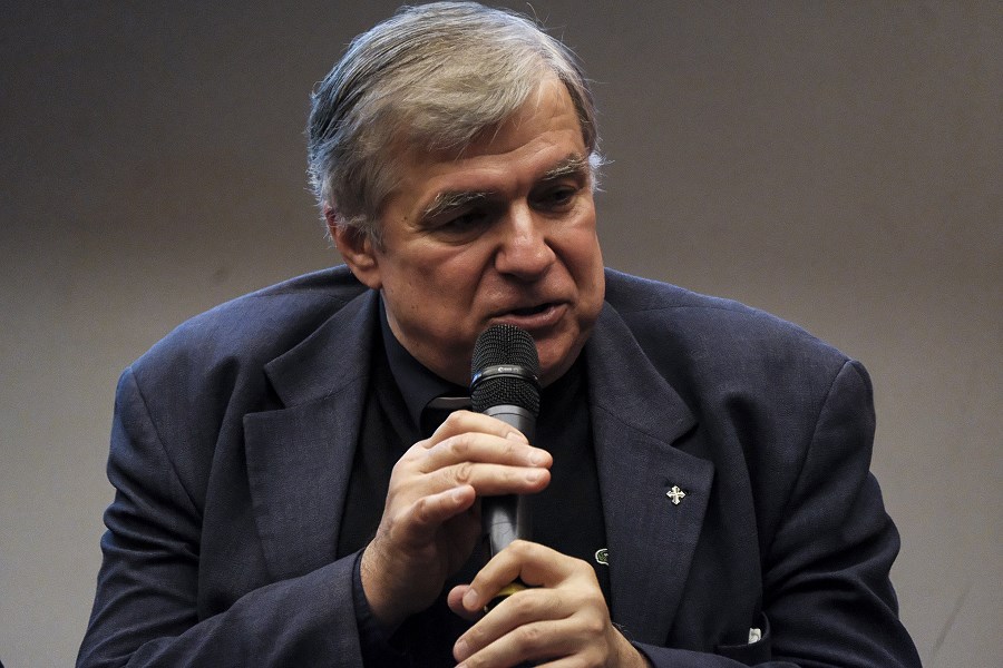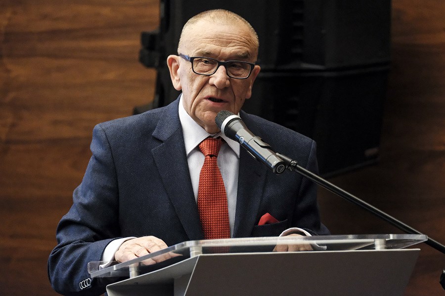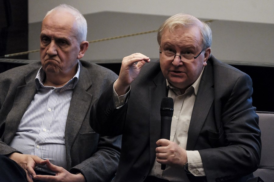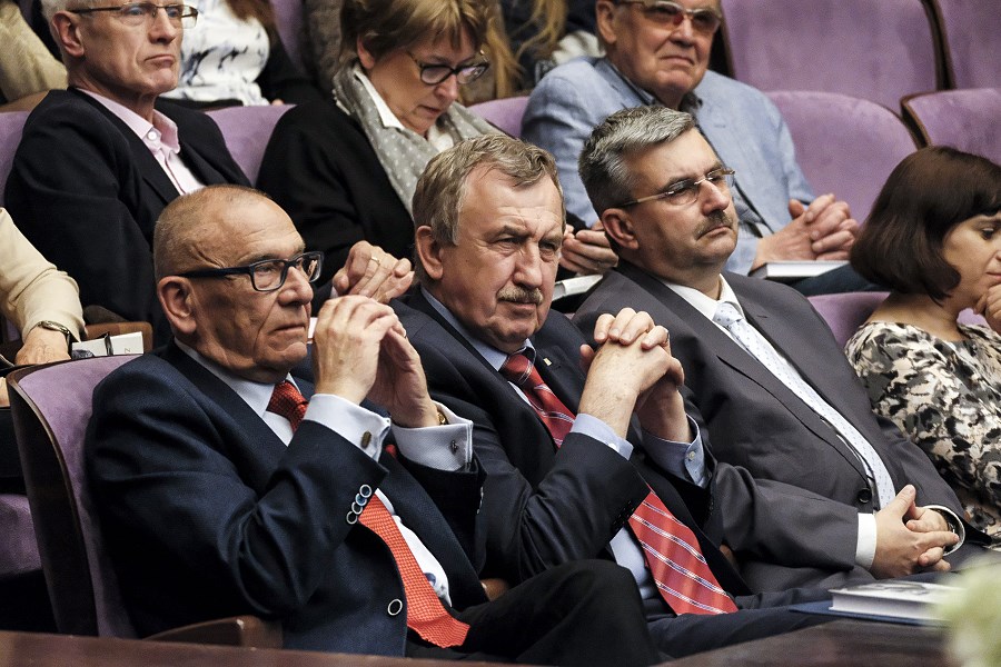 Od lewej: prof. Andrzej Friszke, prof. Aleksander Hall, Henryk Woźniakowski, o.Maciej Zięba i Andrzej Brzeziecki. Fot. Patryk Ogorzałek