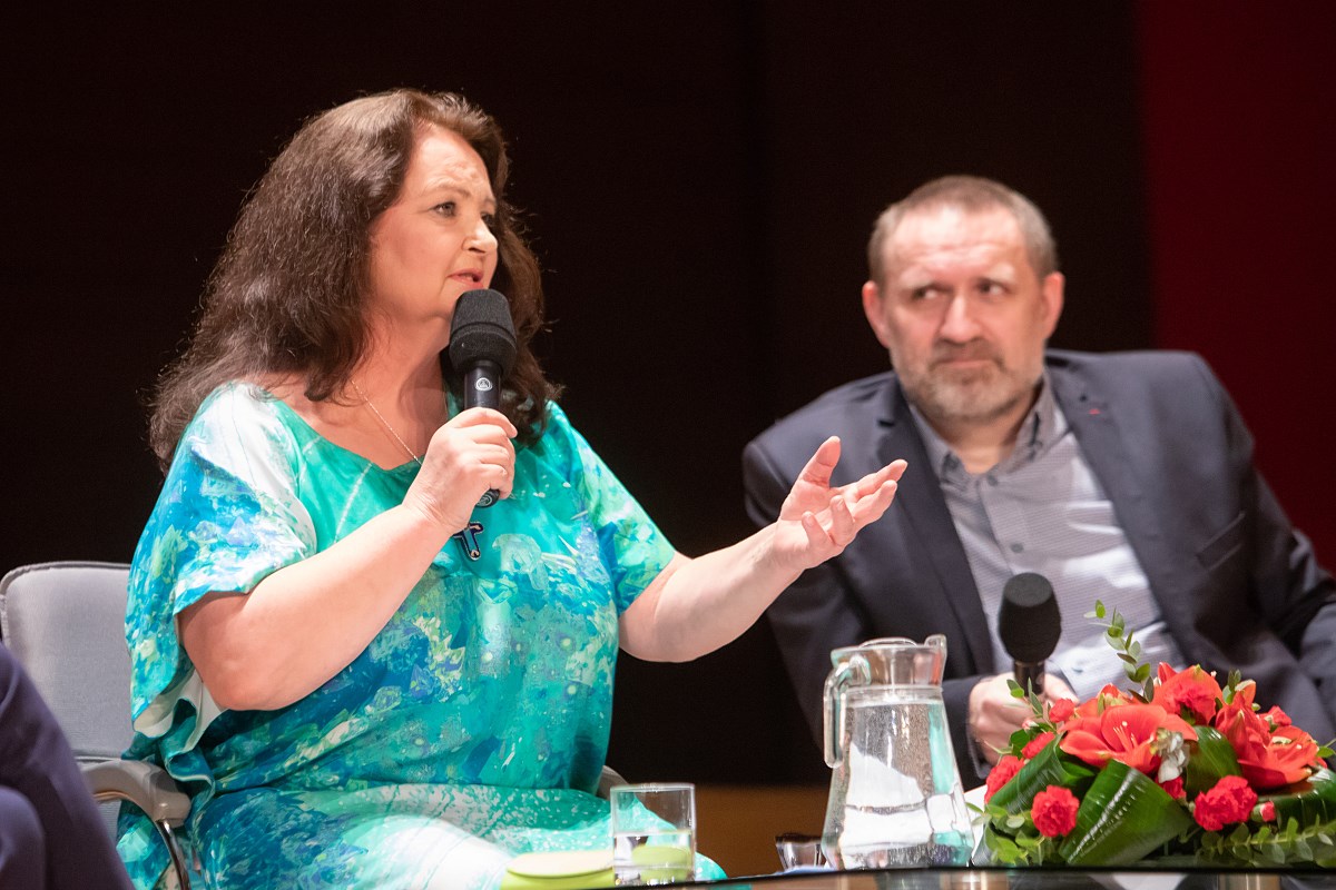 - Bardzo się cieszę, że na sali jest tylu znamienitych gości, ale jeszcze bardziej cieszę się, że przyszło do nas całe mnóstwo nieutytułowanych, zwykłych osób, bo różnie na takich spotkaniach bywa. Nawet najwięksi artyści miewali takie wieczory autorskie, gdy publiczności brakowało - przyznał na początku Wojciech Bonowicz, zaś Anna Dymna przywitała się z publicznością wierszem Wisławy Szymborskiej pt. „Wieczór autorski”, w którym poetka w żartobliwy sposób opisuje m.in. marną frekwencję na spotkaniach autorskich. I choć ten utwór był niezbyt adekwatny do wypełnionej po brzegi sali, to stał się początkiem dyskusji o sensie życia, miłości, cierpieniu i poezji.
