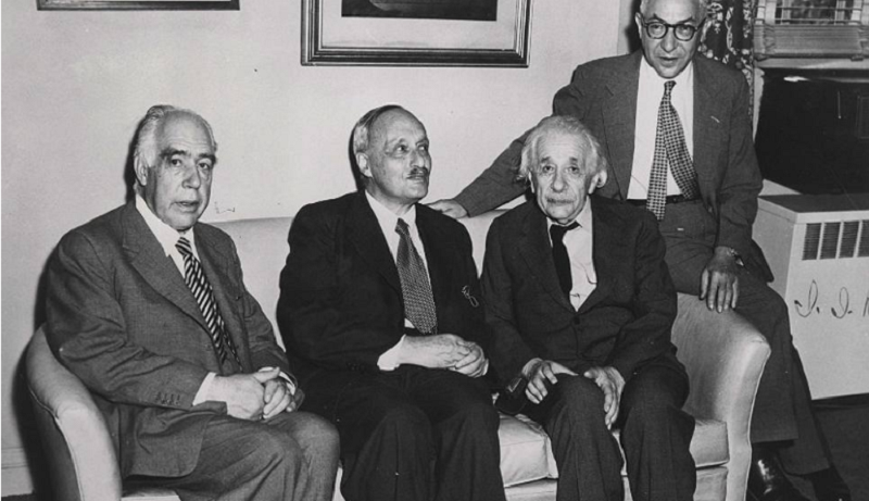 Czterech laureatów Nagrody Nobla. Od prawej: Izydor Izaak Rabi, Albert Einstein, James Franck i Niels Bohr. Fot. Wikipedia