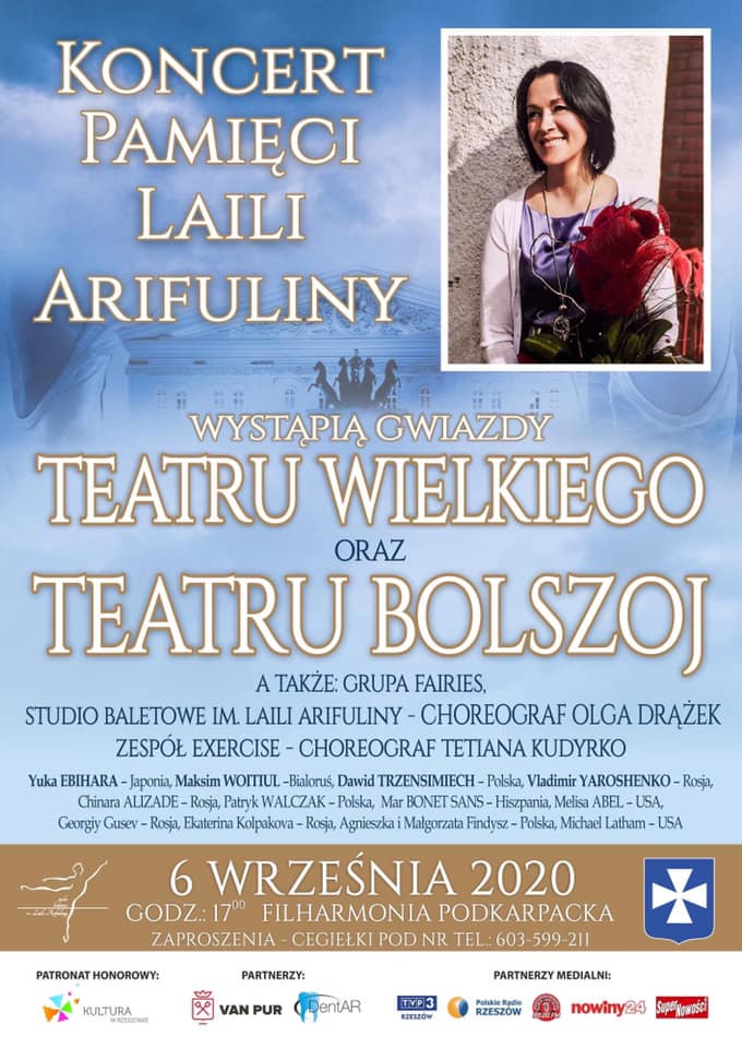 Taniec był największą miłością jej życia i  tym zachwytem potrafiła zarażać wszystkich dookoła. Mija właśnie rok od śmierci Laili Arifuliny, tancerki baletowej, choreografa i reżysera – 6 września o godz. 17 w Filharmonii Podkarpackiej koncert Jej pamięci organizuje Stowarzyszenie "Sport i Balet". Wystąpią artyści baletu z Teatru Wielkiego z Warszawy, Teatru Bolszoj z Moskwy oraz tancerze i muzycy z Polski i zagranicy.
