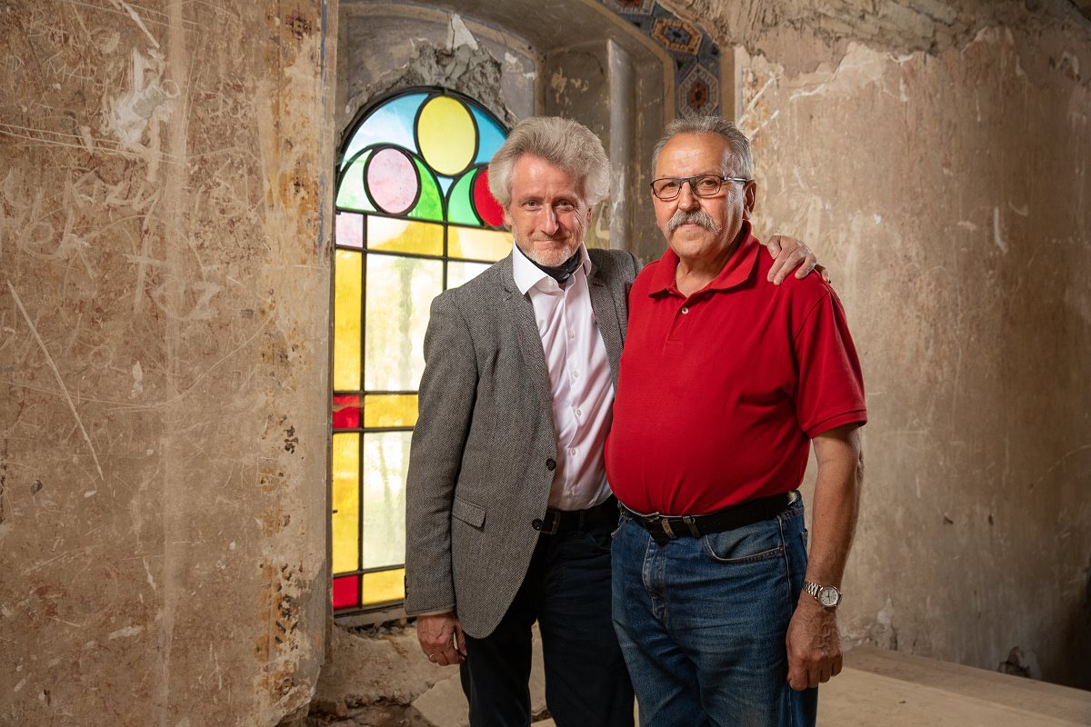 Jarosław Tomaszewski i Jan Herbetko, obecny prezes Stowarzyszenia Ratowania Cerkwi w Baligrodzie