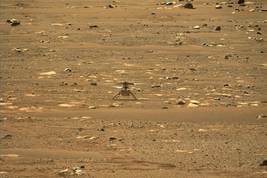 Dron Ingenuity sfotografowany z łazika Perseverance, 16 kwietnia 2021. Fot. NASA/JPL-Caltech/HANDOUT HANDOUT EDITORIAL USE ONLY/NO SALES/PAP/EPA.